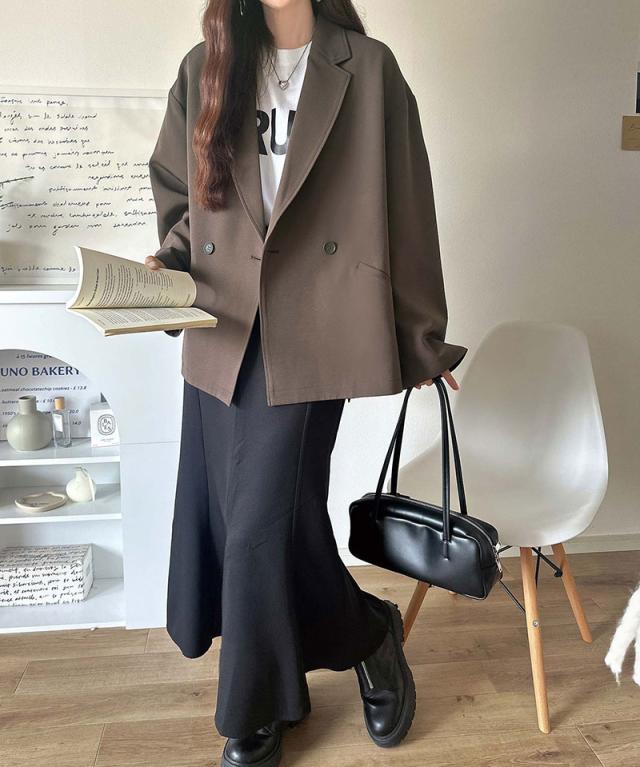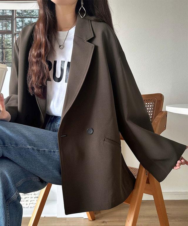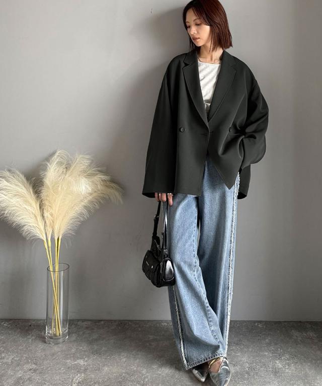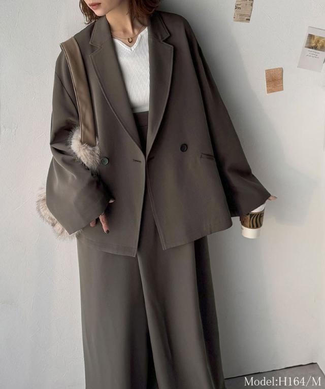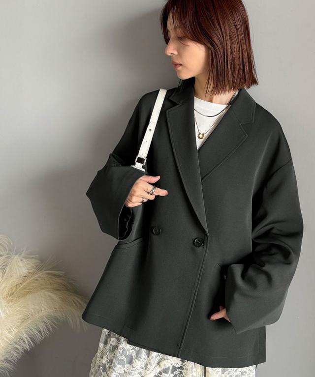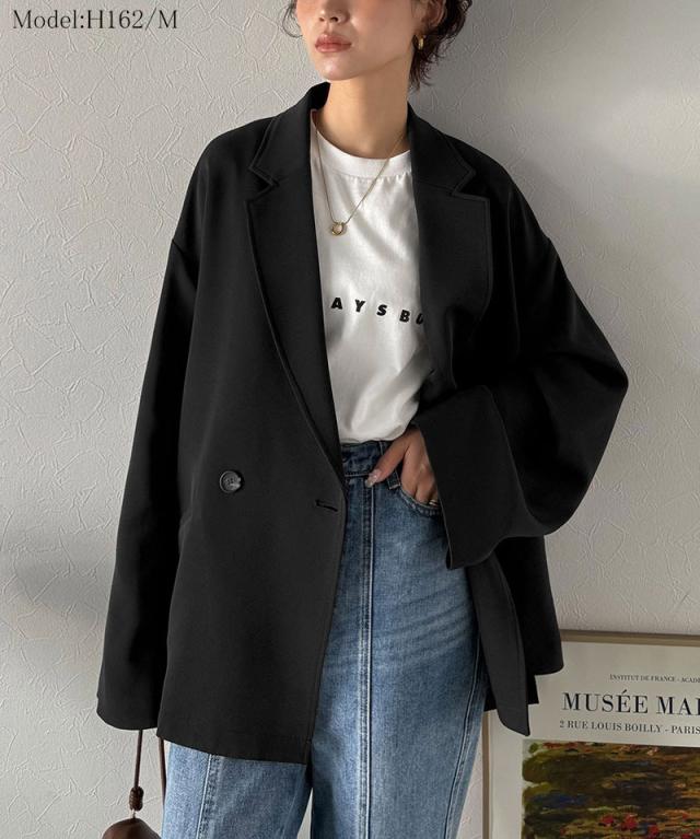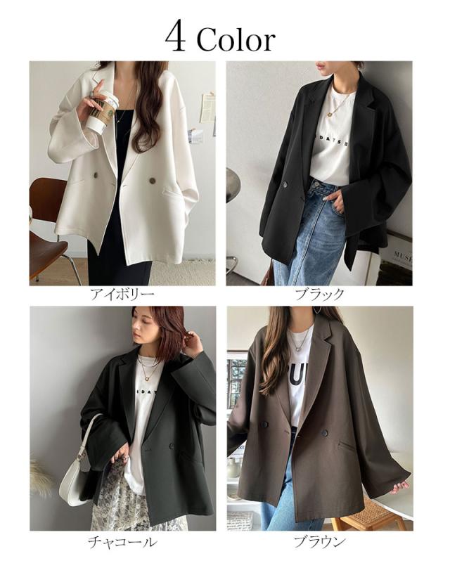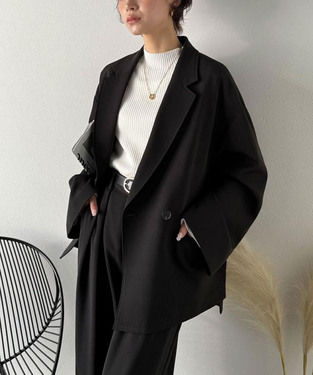クラシカルエルフ冬新作 アウター ジャケット レディース テーラードダブルジャケット オーバーサイズ セットアップ可 カジュアル キレイめ ゆったり スリット 裏地付き 万能 リラックス感 上品 大きいサイズ 2025aw ce1070184