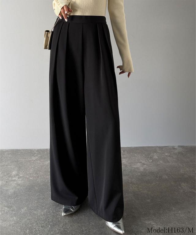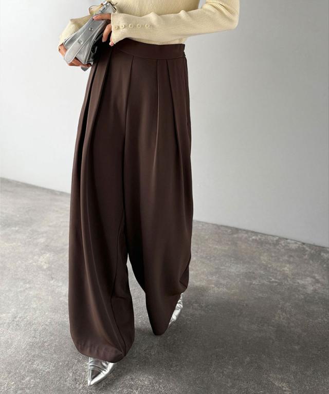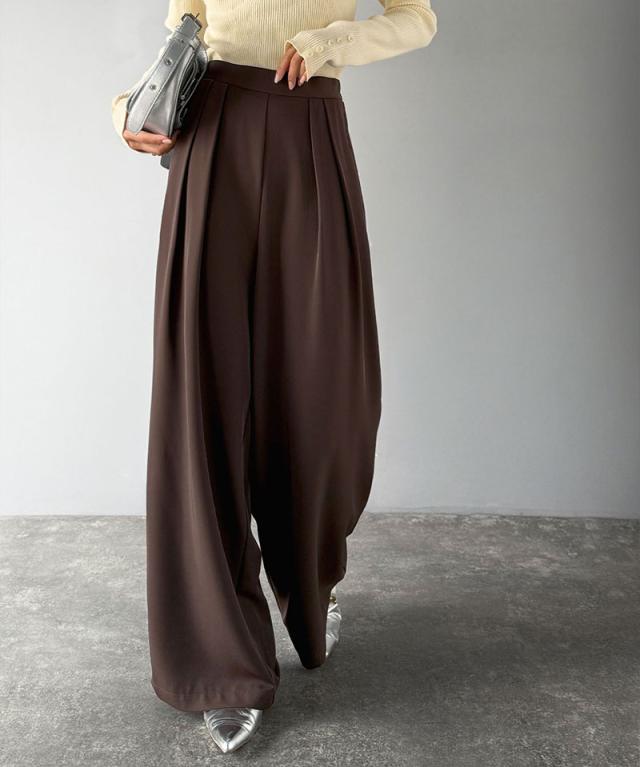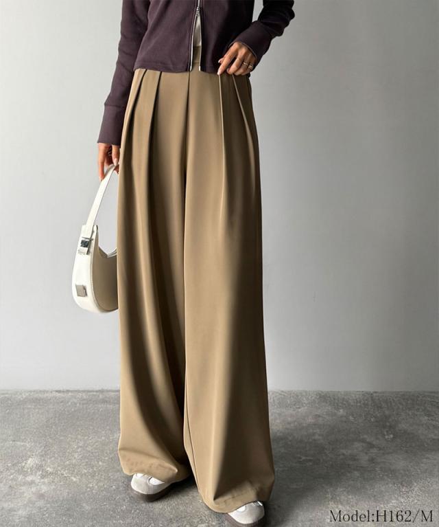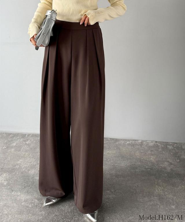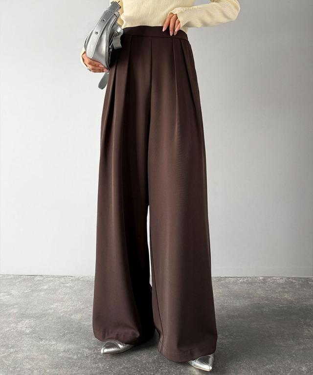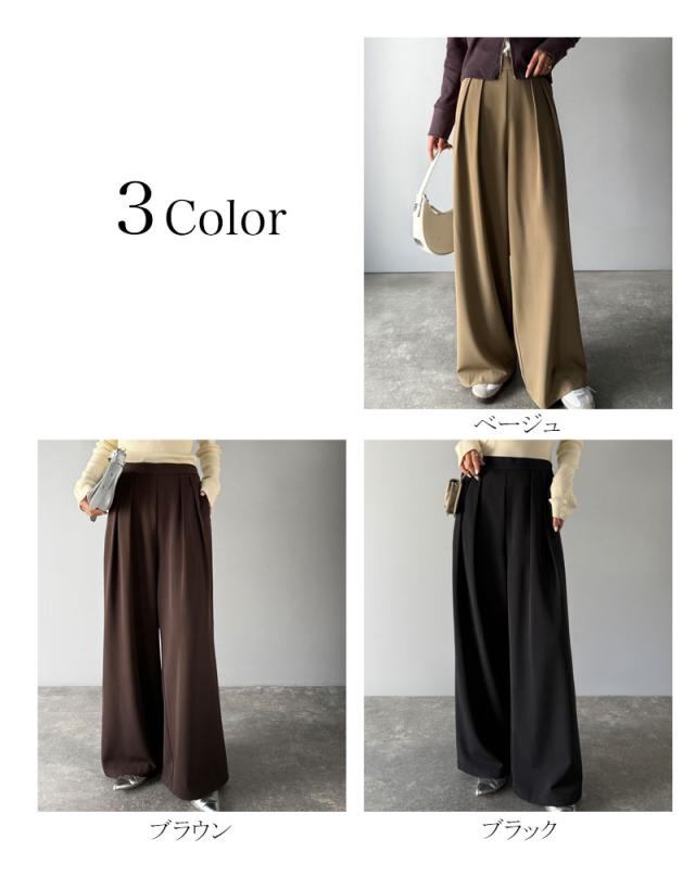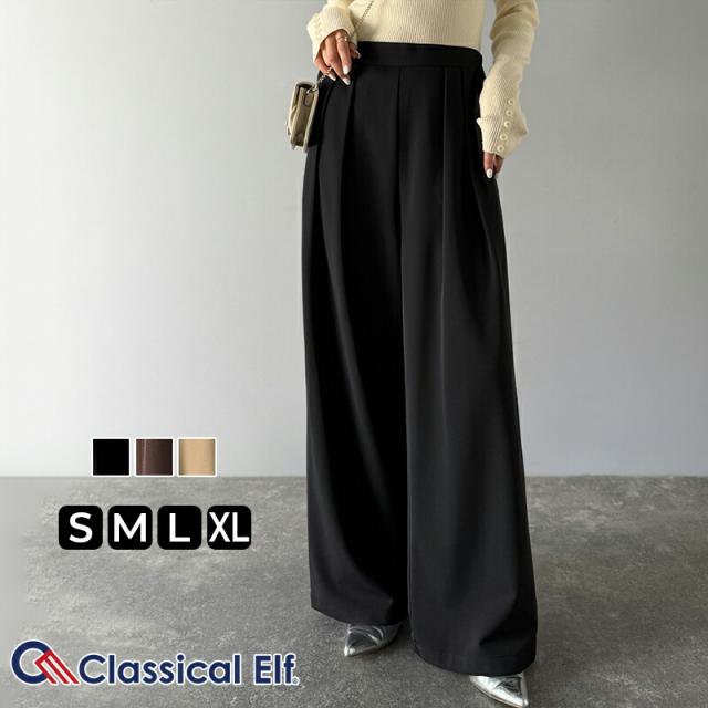クラシカルエルフ冬新作 ワイドパンツ レディース きれいめ ボトムス パンツ レディース 上品見え とろみ 素材 フロント 2 タック スラックス ウエスト 後ろ ゴム 仕様 ゆるっと オーバーサイズ 大きいサイズ 2025aw ce1110136