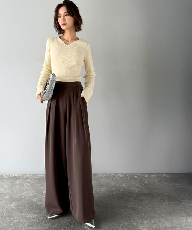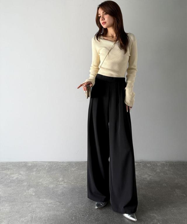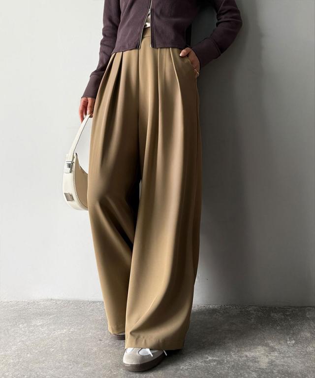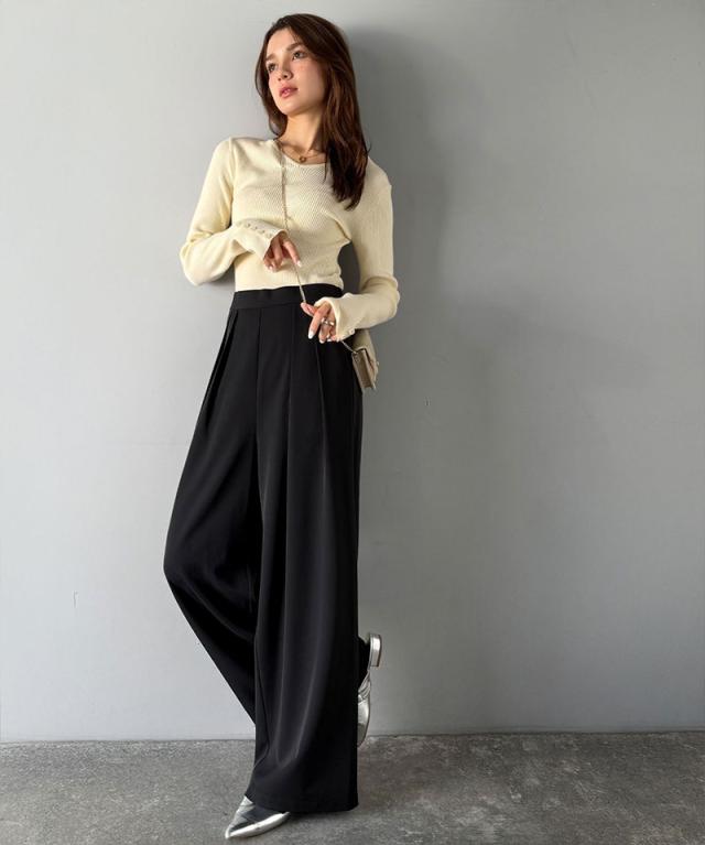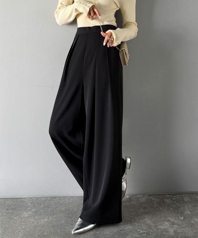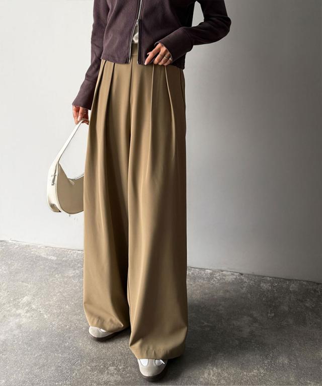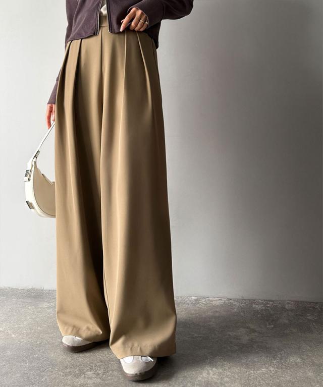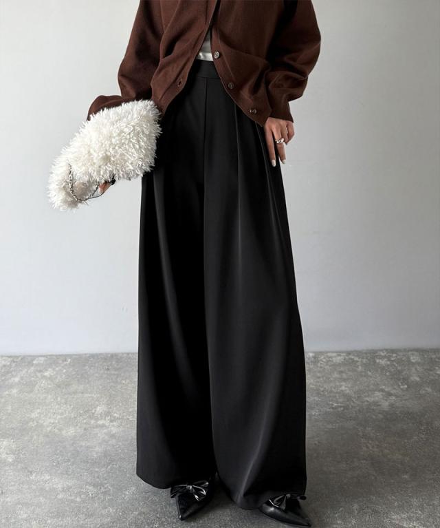 クラシカルエルフ冬新作 ワイドパンツ レディース きれいめ ボトムス パンツ レディース 上品見え とろみ 素材 フロント 2 タック スラックス ウエスト 後ろ ゴム 仕様 ゆるっと オーバーサイズ 大きいサイズ 2025aw ce1110136