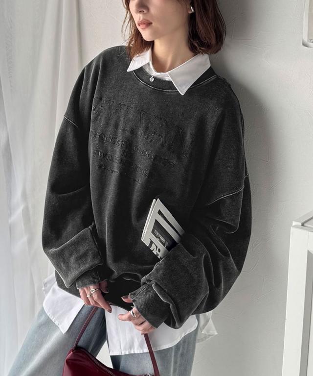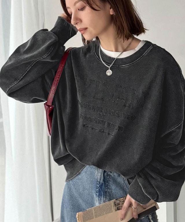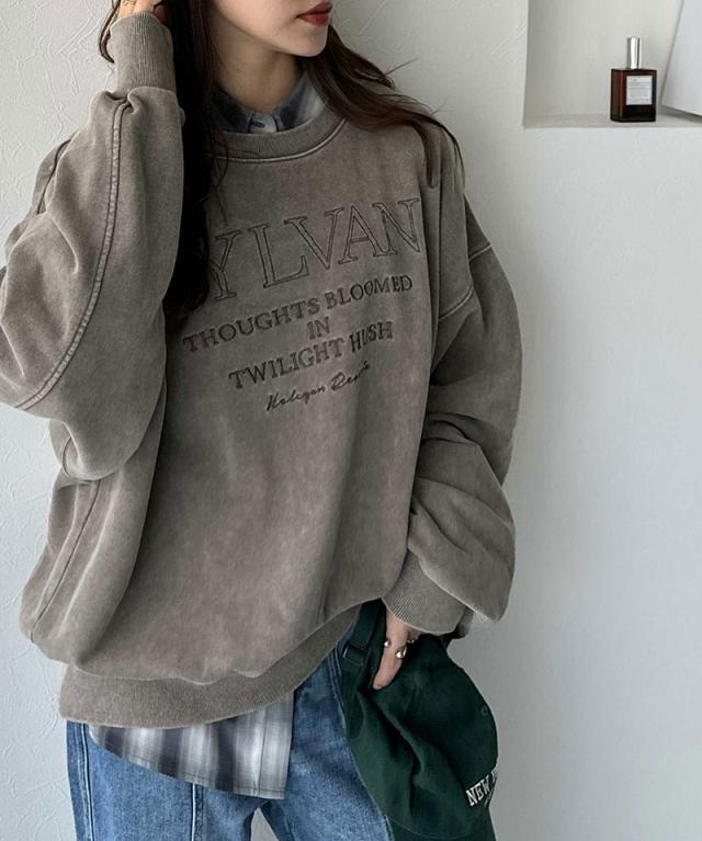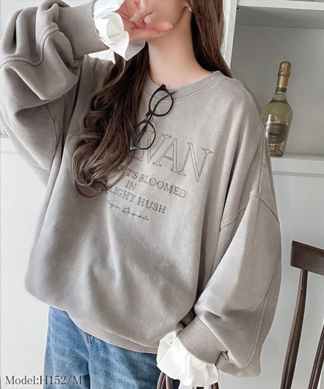 クラシカルエルフ冬新作 スウェット レディース トップス プルオーバー オーバーサイズ 刺繍ロゴ レトロ 古着 大人カジュアル メンズライク ビッグシルエット ゆるっと 体型カバー お洒落 大きいサイズ 2025aw ce1260509