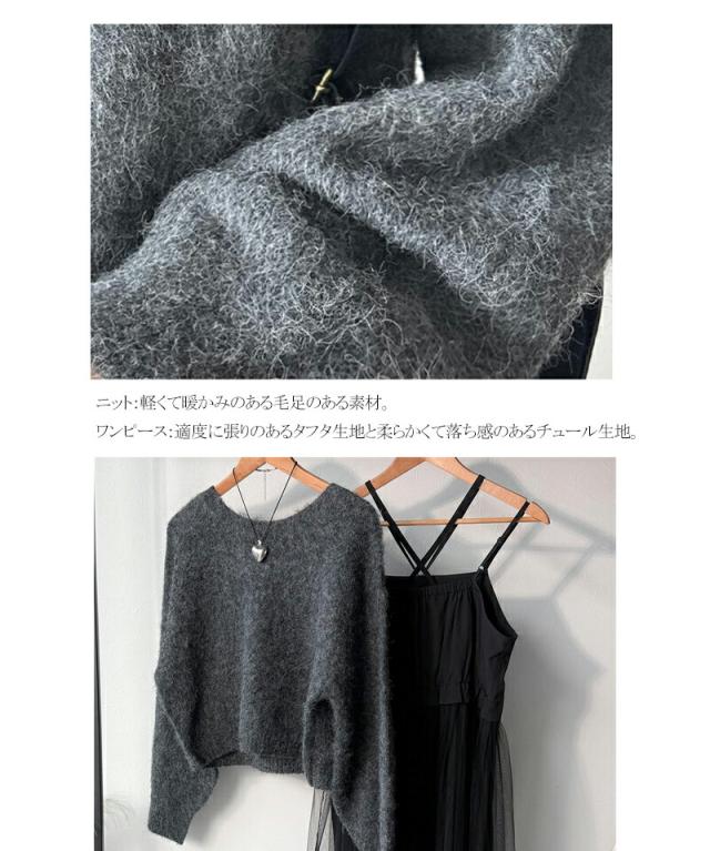 クラシカルエルフ秋新作 ワンピース 秋冬 きれいめ レディース 褒められ マルチ way ニット × チュール ワンピ セットアイテム ロングシーズン 大きいサイズ 2025aw ce1260524