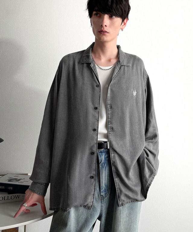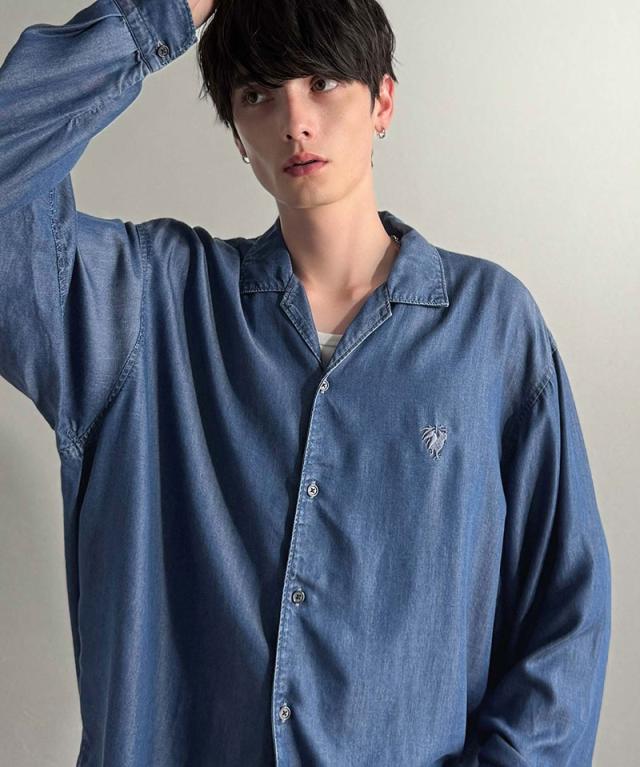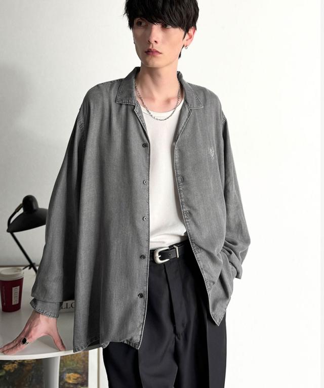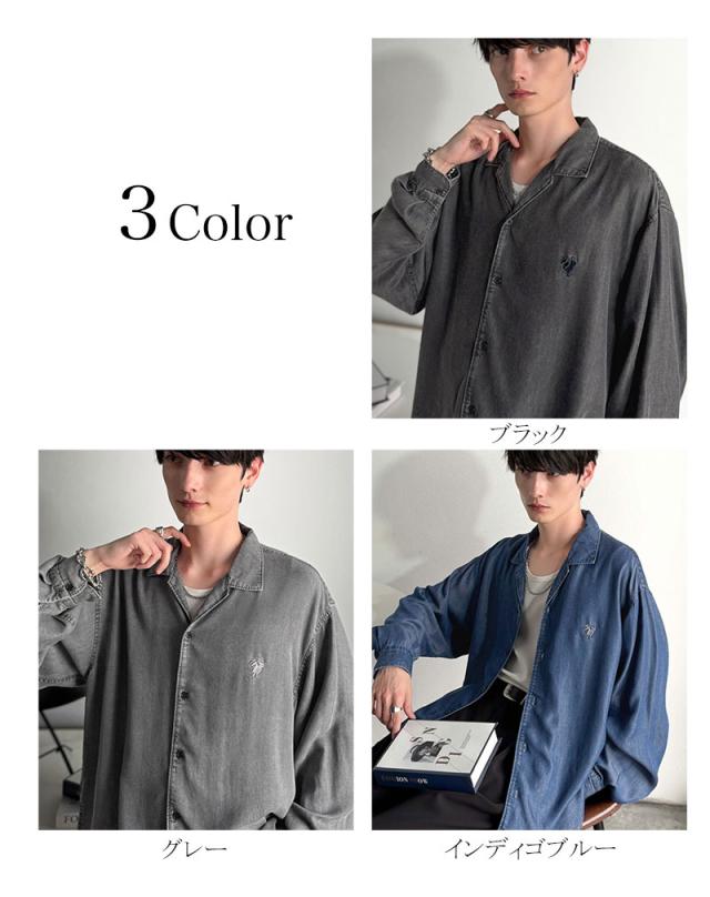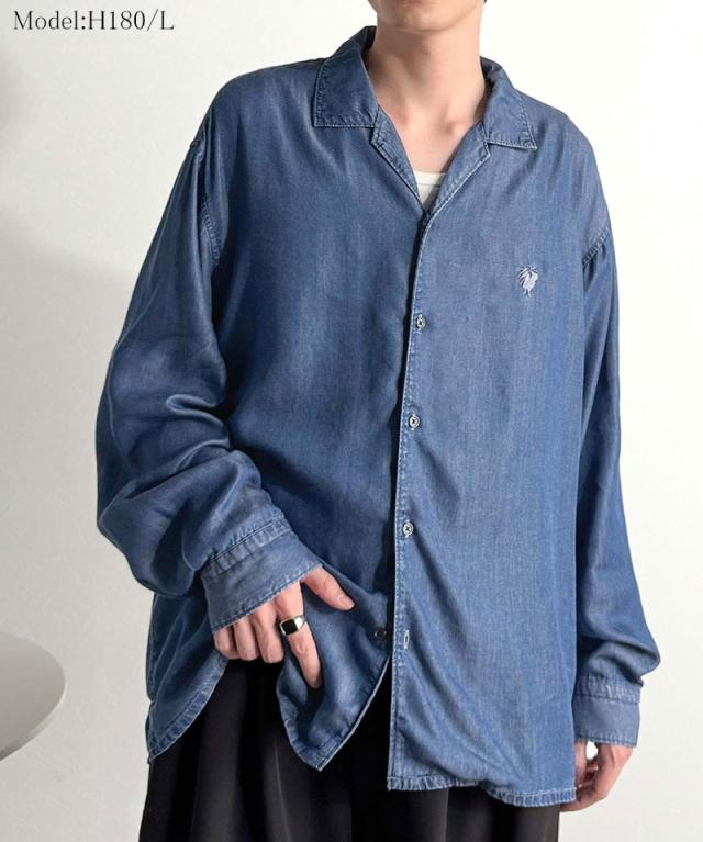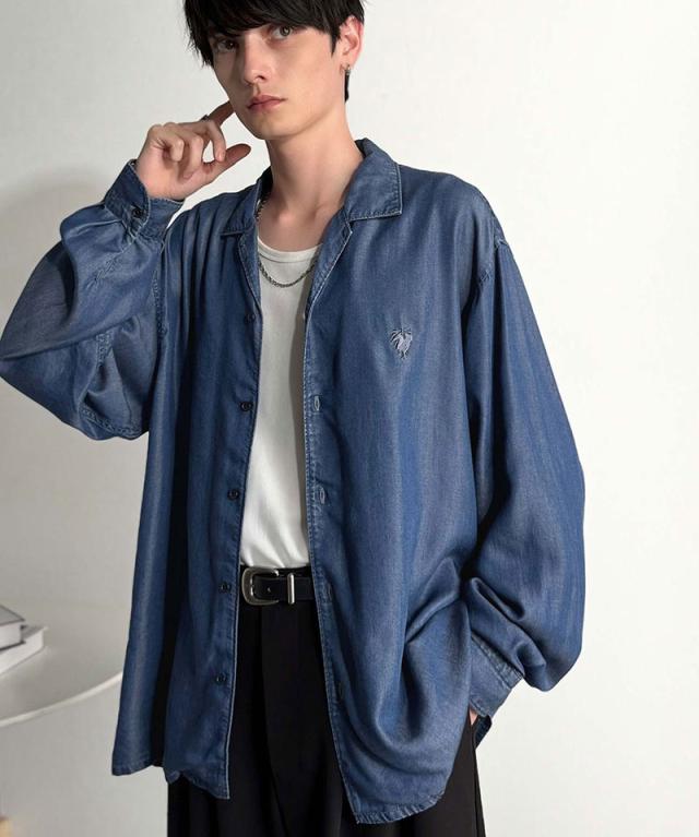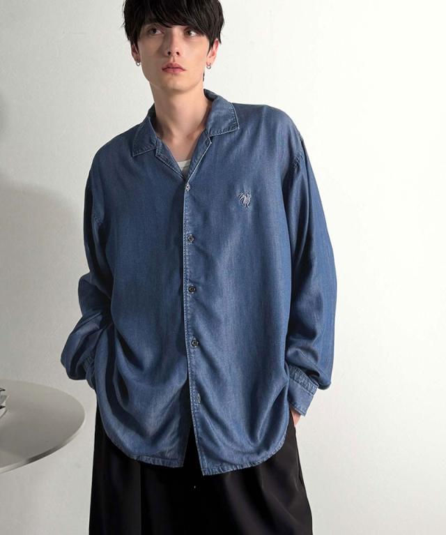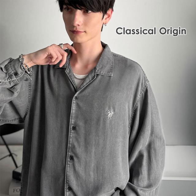 クラシカルエルフ冬新作 Classical Origin シャツ メンズ 長袖 カジュアル トップス ルーズフィット オープンカラー デニムシャツ 柔らか デニム素材 ゆったり 開襟 リラックス とろみ 落ち感 ボックスシルエット 日常 休日 大きいサイズ 2025aw co1150038