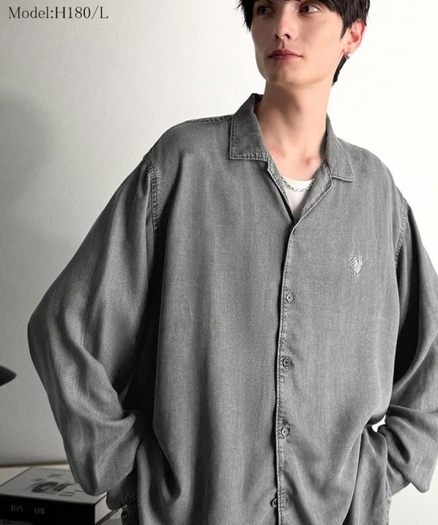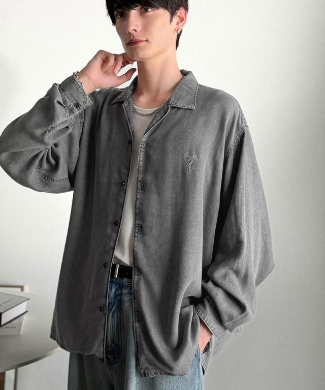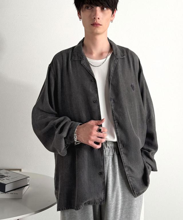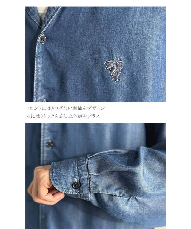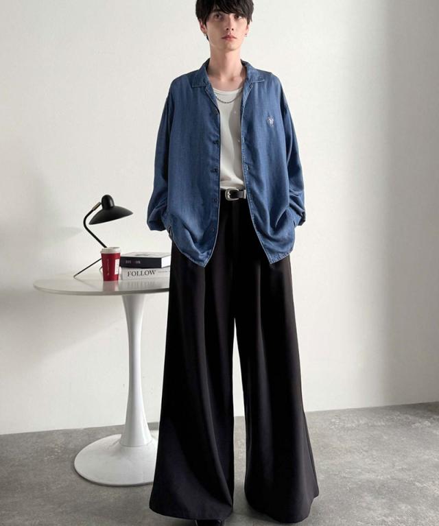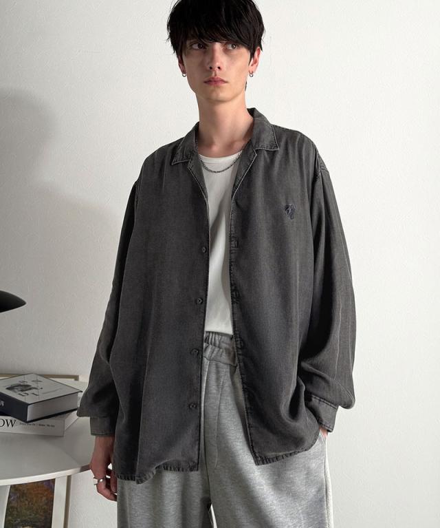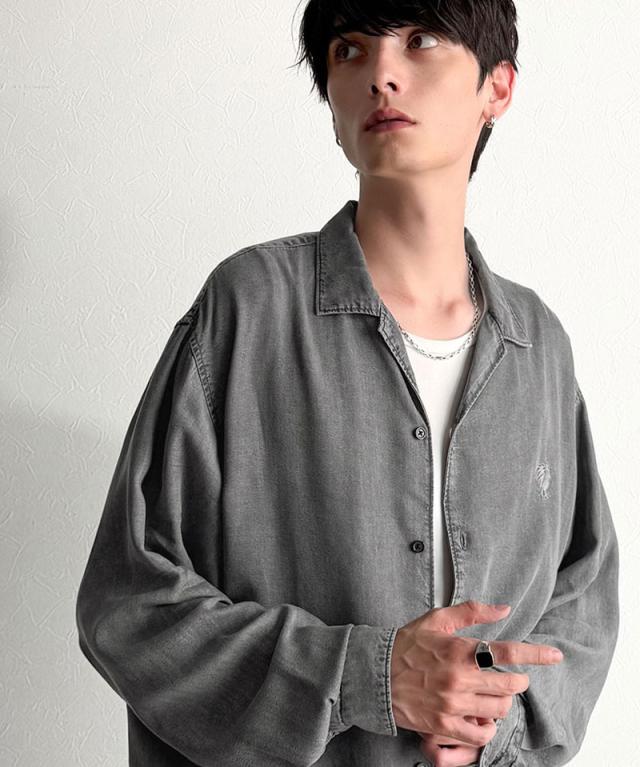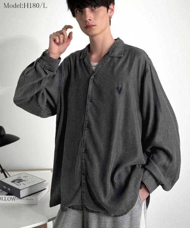 クラシカルエルフ冬新作 Classical Origin シャツ メンズ 長袖 カジュアル トップス ルーズフィット オープンカラー デニムシャツ 柔らか デニム素材 ゆったり 開襟 リラックス とろみ 落ち感 ボックスシルエット 日常 休日 大きいサイズ 2025aw co1150038