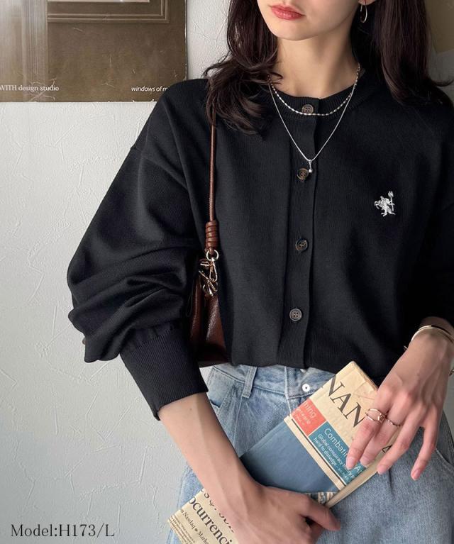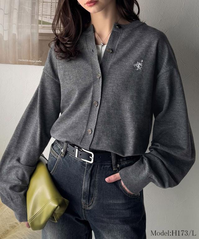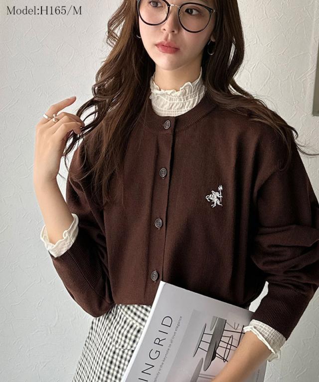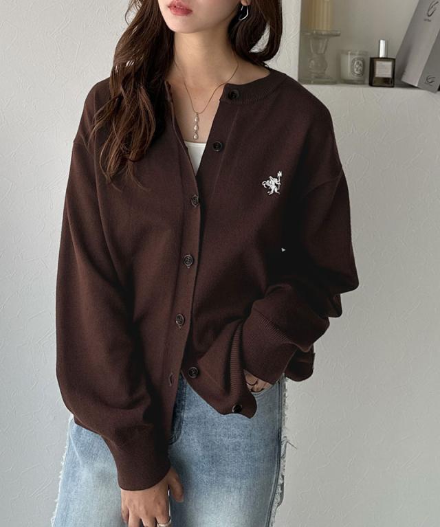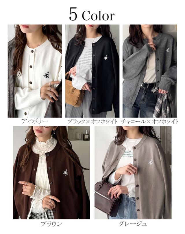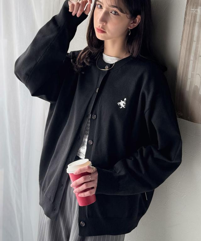 クラシカルエルフ冬新作 java ジャバコラボ カーディガン レディース トップス 配色刺繍 長袖 ベーシック カジュアル ワンポイント シンプル ゆったり 抜け感 ロングシーズン スタイルアップ 羽織る オーバーサイズ リブ仕様 大きいサイズ 2025aw jv1240106