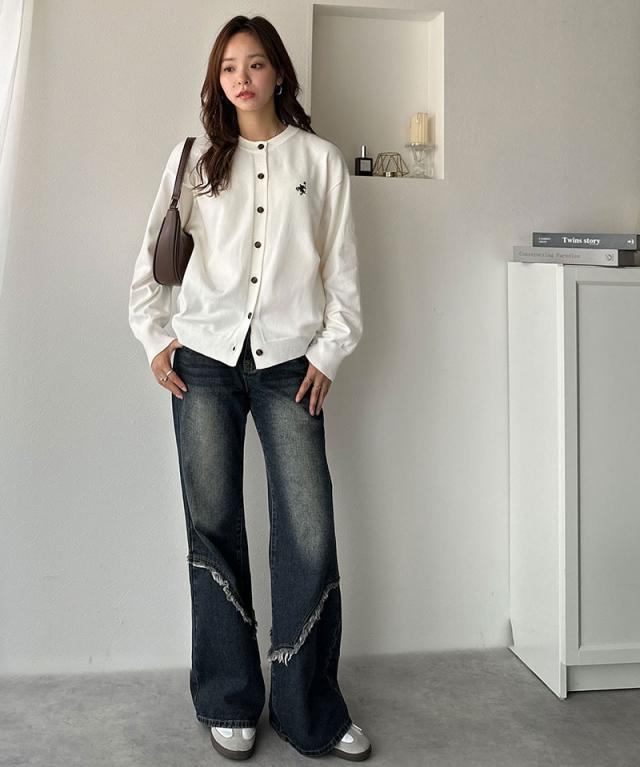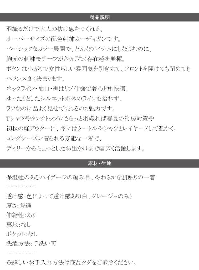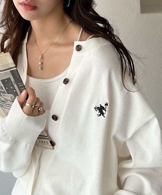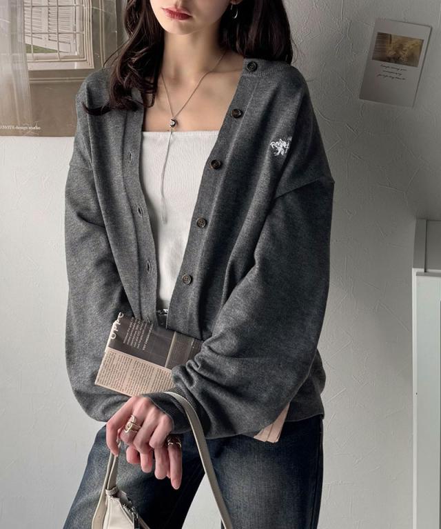 羽織るだけで大人の抜け感をつくれる、オーバーサイズの配色刺繍カーディガンです。