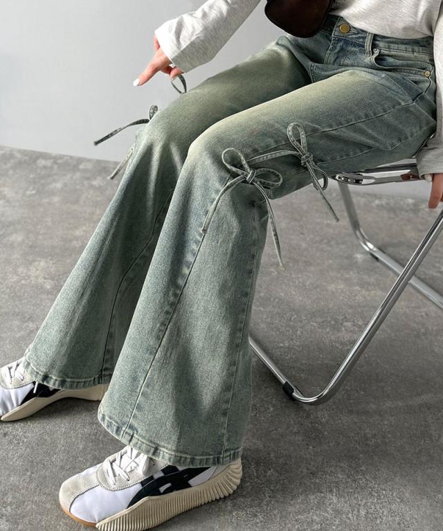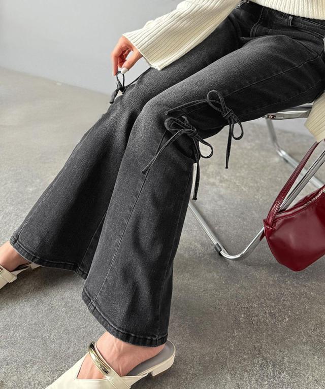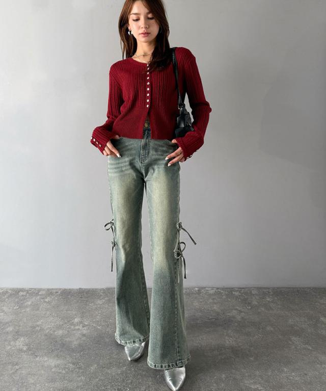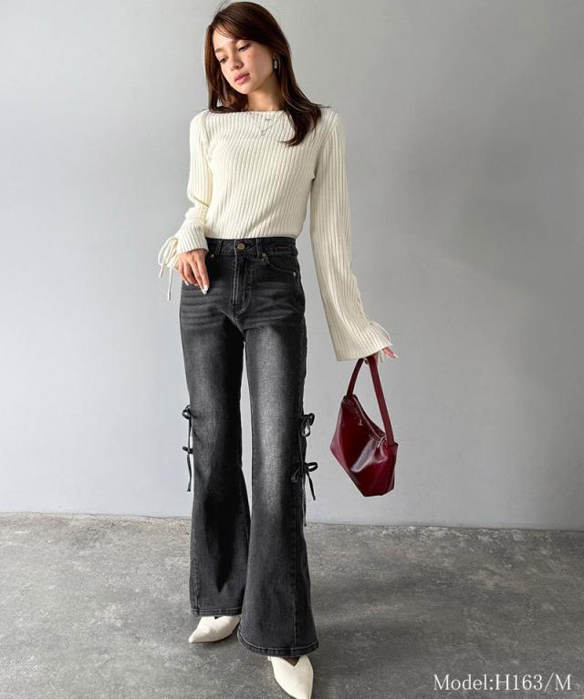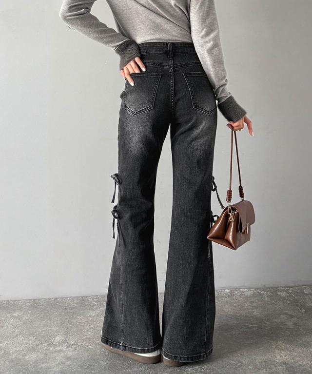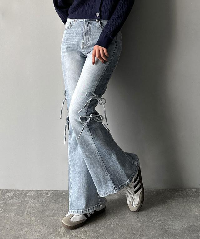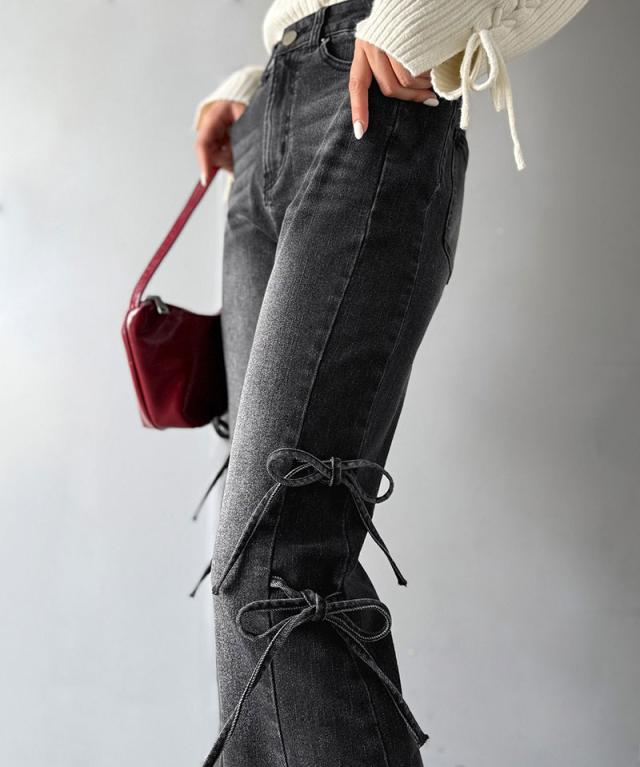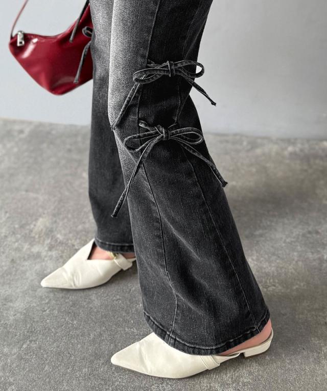 クラシカルエルフ冬新作 mily bilet ボトムス レディース デニムパンツ レディース 大きいサイズ ストレッチ フリンジフレア 美脚効果 上品 リボン 快適 ストレッチ素材 トレンド感 カジュアル フォーマル オールシーズン ガーリー 2025aw mi0909015