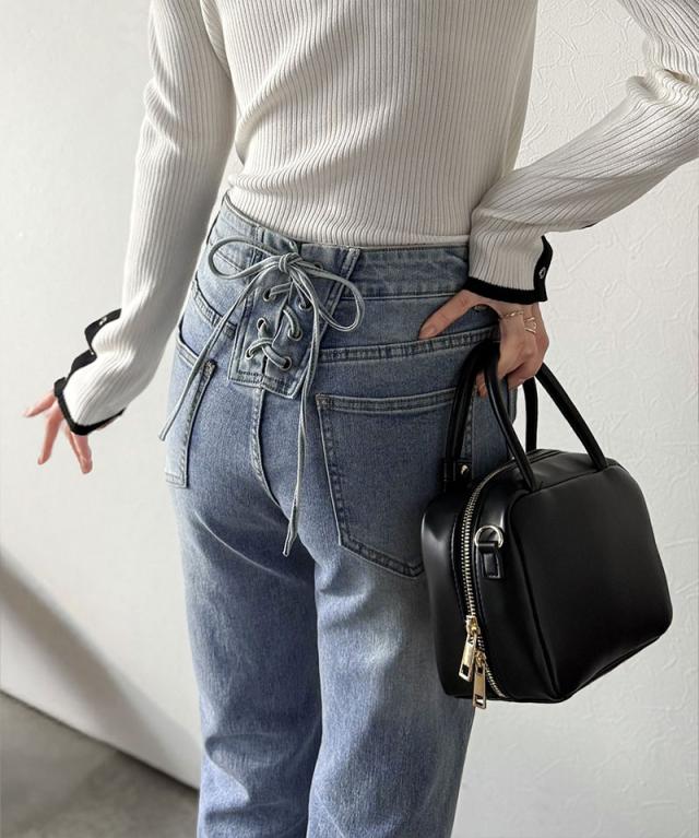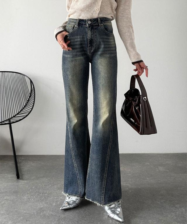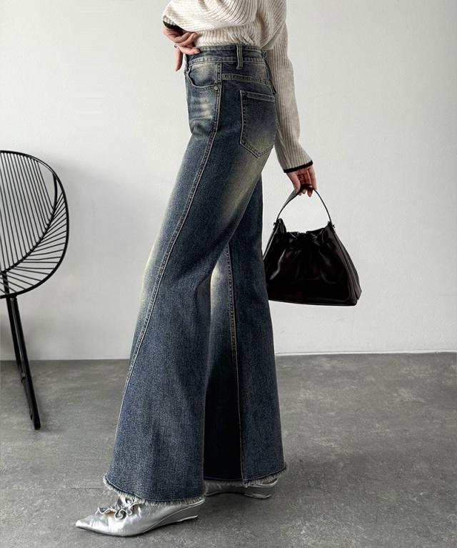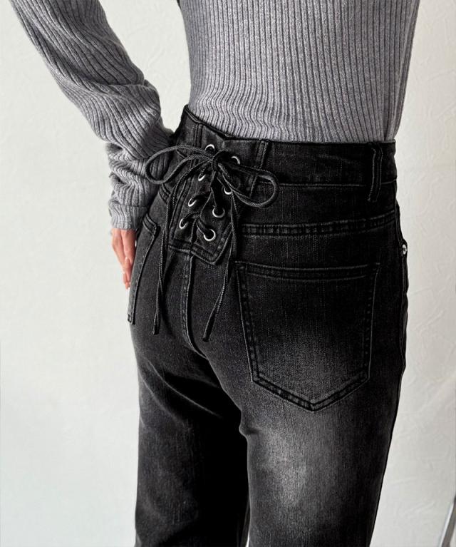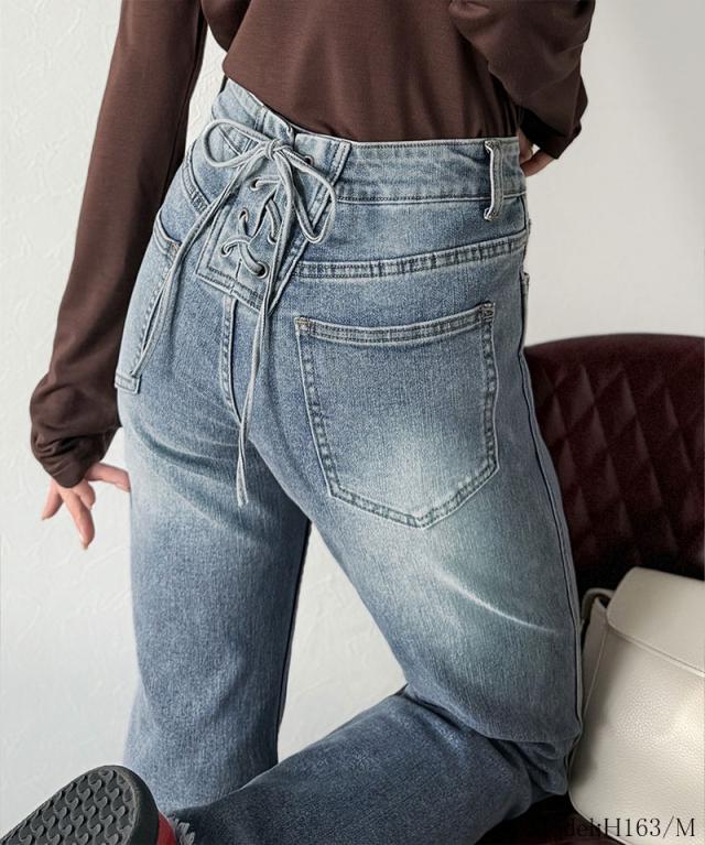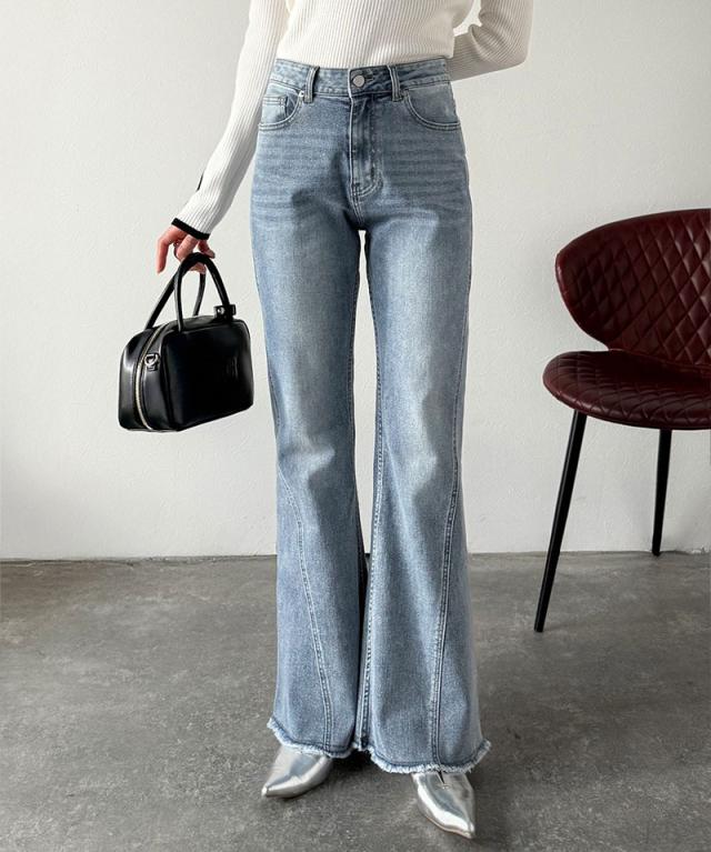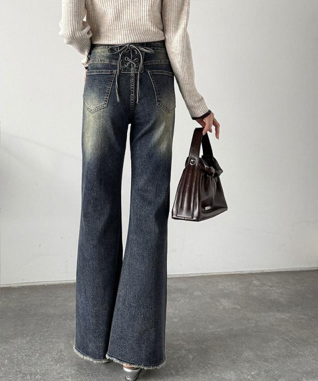 クラシカルエルフ冬新作 mily bilet ボトムス レディース パンツ レディース バック リボン 美脚見え ストレッチ フレア デニム 裾 ダメージ フリンジ 大きいサイズ 2025aw mi0909016
