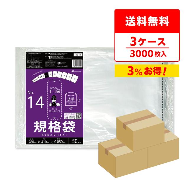 規格袋 14号 28x41cm 0.080mm厚 透明 50枚x20冊x3箱 FG-14-3 食品検査適合 ポリ袋 袋 平袋 保存袋 食品袋 梱包 No.14 クリア RoHS指定 サンキョウプラテック