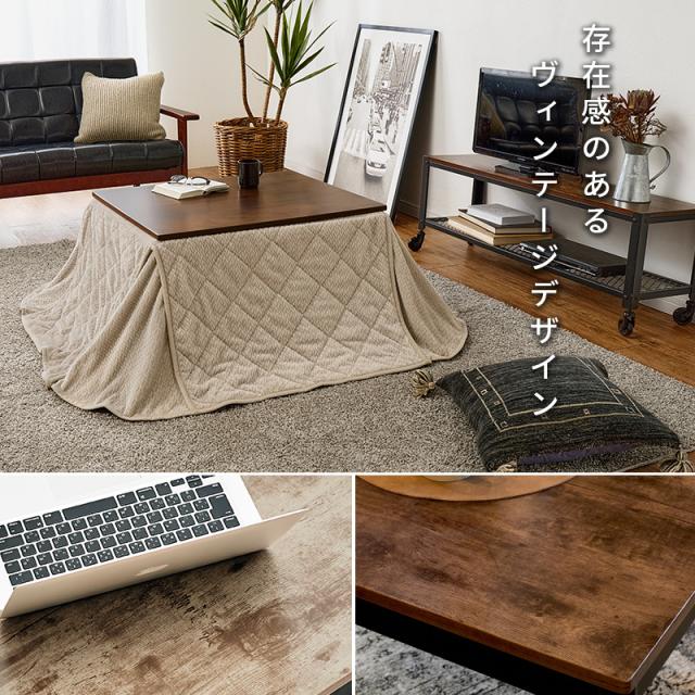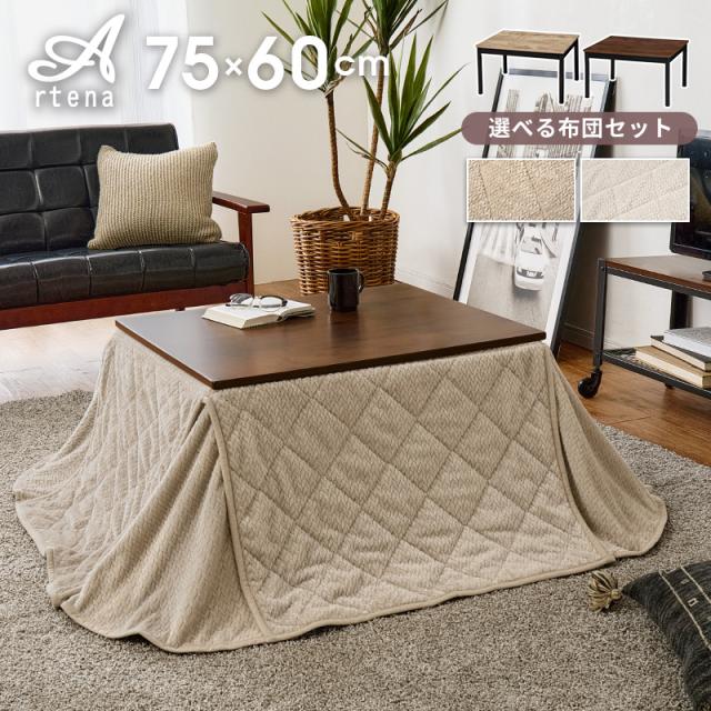 こたつセット 長方形 こたつテーブル セット こたつ布団 省スペース こたつ掛け布団 コタツ テーブル 高さ調節 おしゃれ 一人用 75×60 アルテナ+ポカ アンティーク調 かっこいい 可愛い 一人暮らし ローテーブル