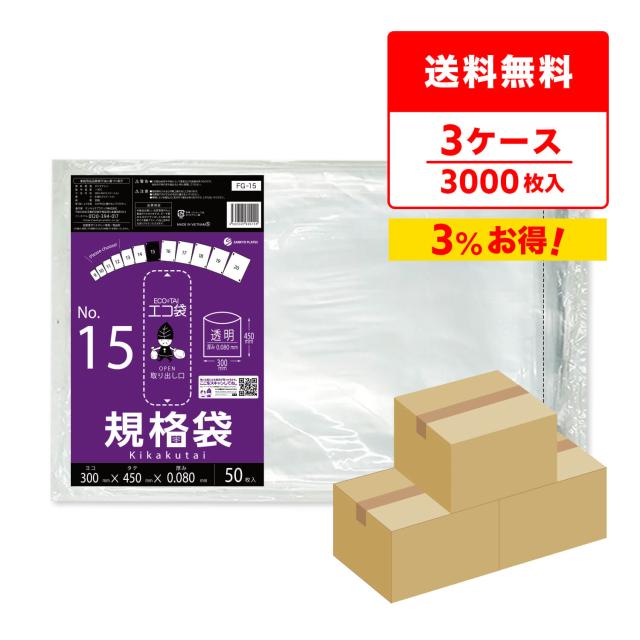 規格袋 15号 30x45cm 0.080mm厚 透明 50枚x20冊x3箱 FG-15-3 食品検査適合 ポリ袋 袋 平袋 保存袋 食品袋 梱包 No.15 クリア RoHS指定 サンキョウプラテック