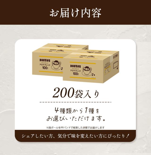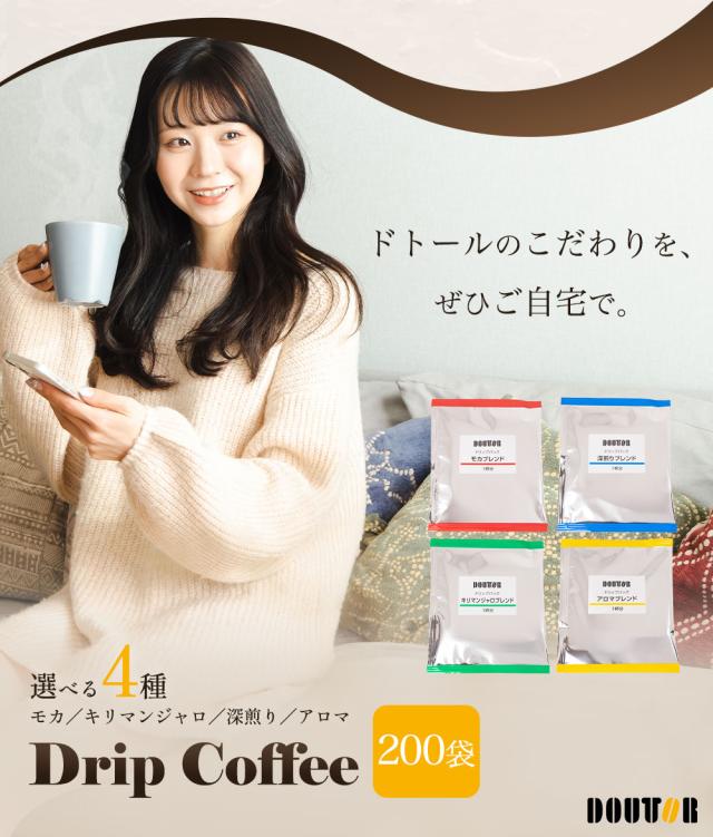 ドリンク ドトールコーヒー 4種類から2種選べるドリップパック 飲み比べセット 各100袋2種 200袋 DC200 ドトール コーヒー 珈琲 ドリップコーヒー アロマ まろやか 深煎り モカ キリマンジャロ ブレンド ドリップバック 深煎り ブラックコーヒー 飲み比べ 送料無料