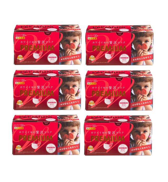 カワイイ女の贅沢マスク プレミアム 30枚 個別包装 ももいろピンク 絶妙サイズ(16×8.5cm)×6個【6個セット】送料無料 原田産業