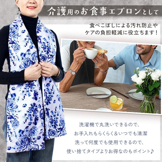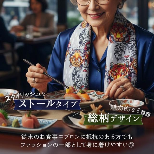 新作 丸洗いで清潔&オシャレな総柄デザイン!ストールタイプ大人用食事エプロン エプロン スタイ 大人 シニア 食べこぼし 食事エプロン スカーフ ストール おしゃれ 食事用 食事 介護用 介護 介助 タオル 洗える