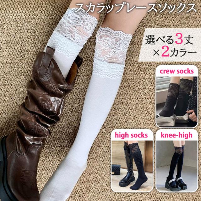 新作 選べる3丈×2カラー切り替えデザインスカラップレースソックス レディース 靴下 ソックス クルーソックス ハイソックス ニーハイ ロング 膝下 膝上 ルーズソックス くしゅくしゅ レース 薄手 トレンド 人気