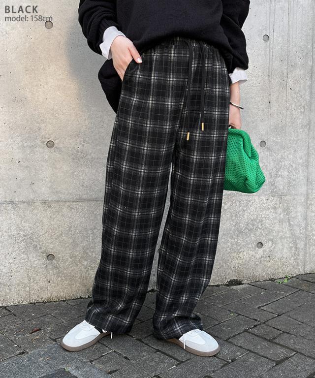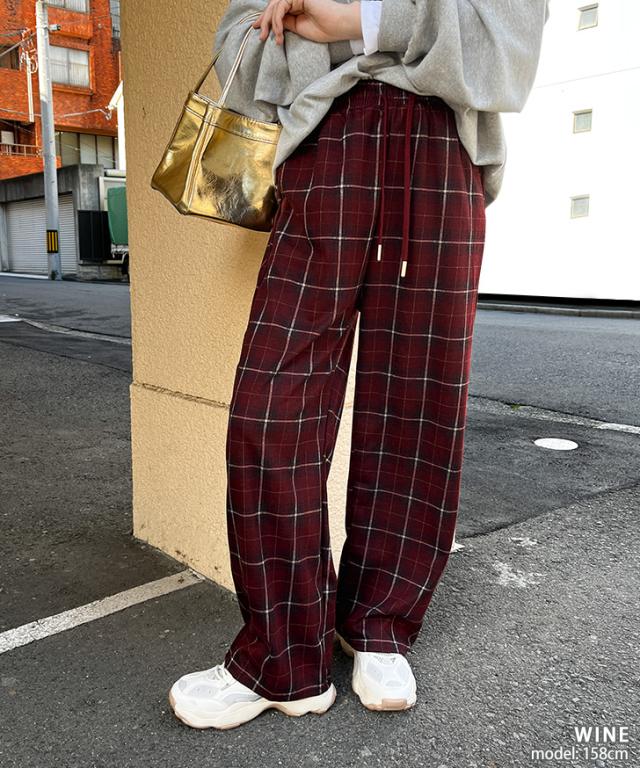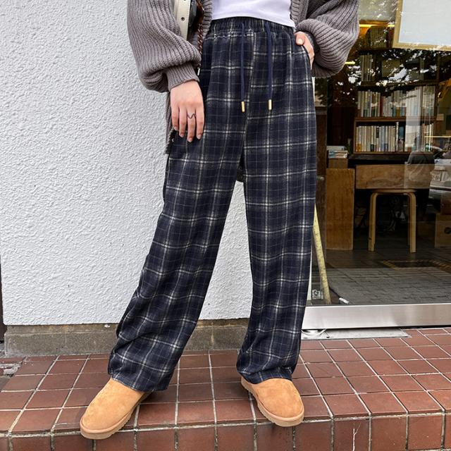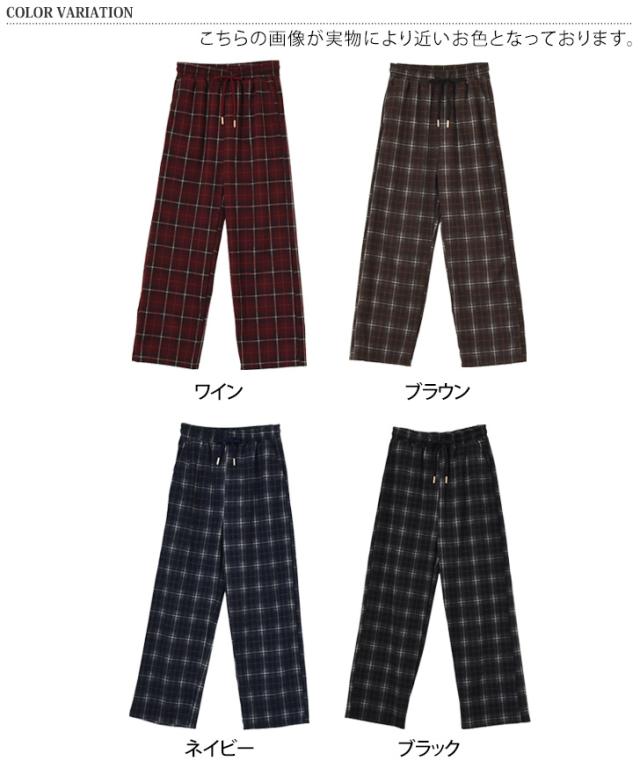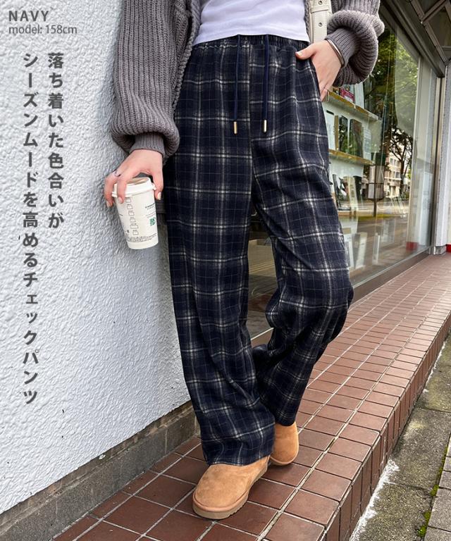 新作 サイドポケットドローストリングフランネルチェックパンツ レディース ボトムス 秋 冬 薄手 軽量 ウエストゴム 暖かい あったか 寒さ対策 微起毛 おしゃれ カジュアル デイリー 部屋着 ルームウェア ズボン