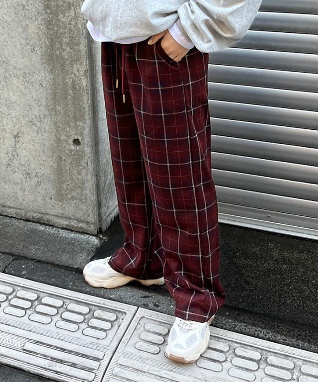 落ち着いた色合いがシーズンムードを高めるチェックパンツ