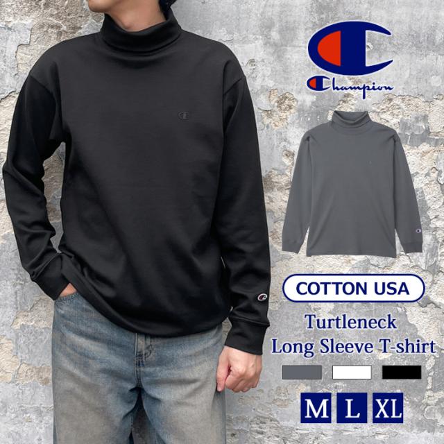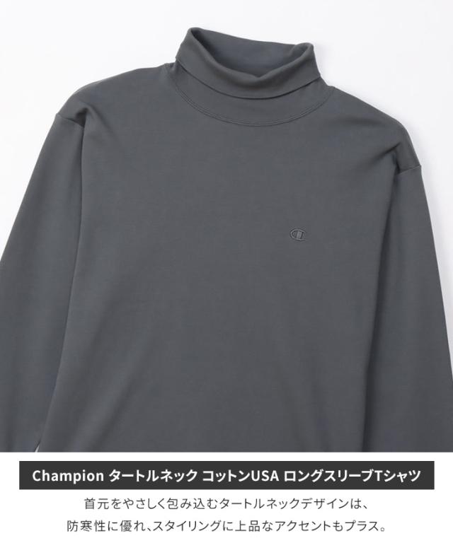 新作 Champion チャンピオン タートルネック コットンUSA ロングスリーブTシャツ C3-C428 カットソー メンズ 長袖 トップス ロンT ロンティー ハイネック 大きいサイズ 綿100% ベーシック