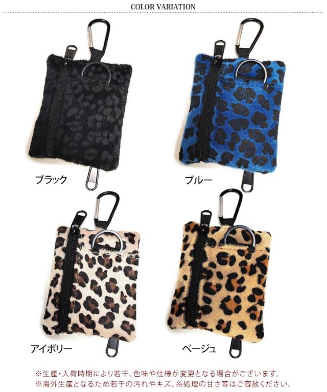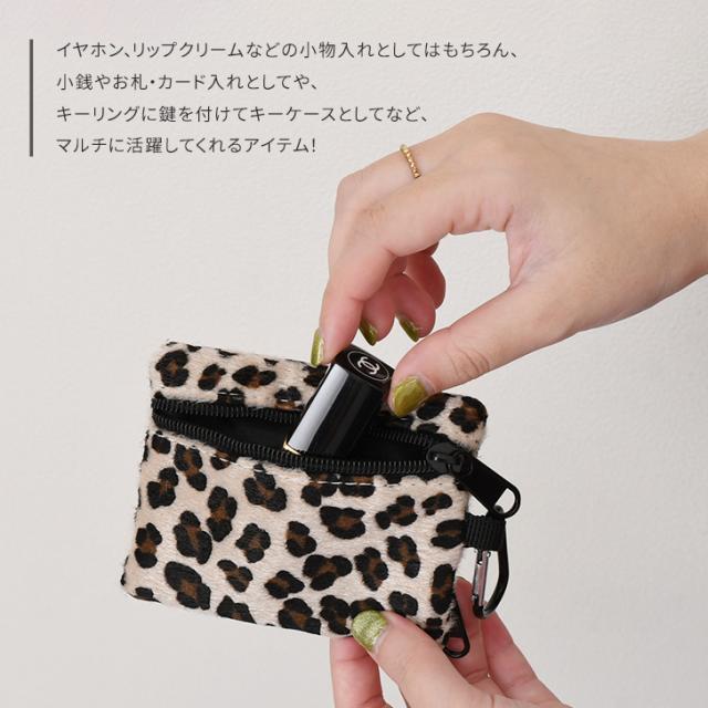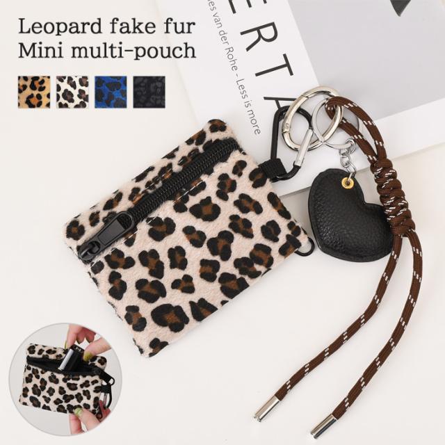 新作 カラビナ付きフェイクファーレオパードミニマルチポーチ レディース メンズ ポーチ 小物入れ コインケース 小銭入れ ミニ財布 カードケース フラグメントケース キーホルダー キーケース 鍵 カギ ヒョウ柄 豹柄