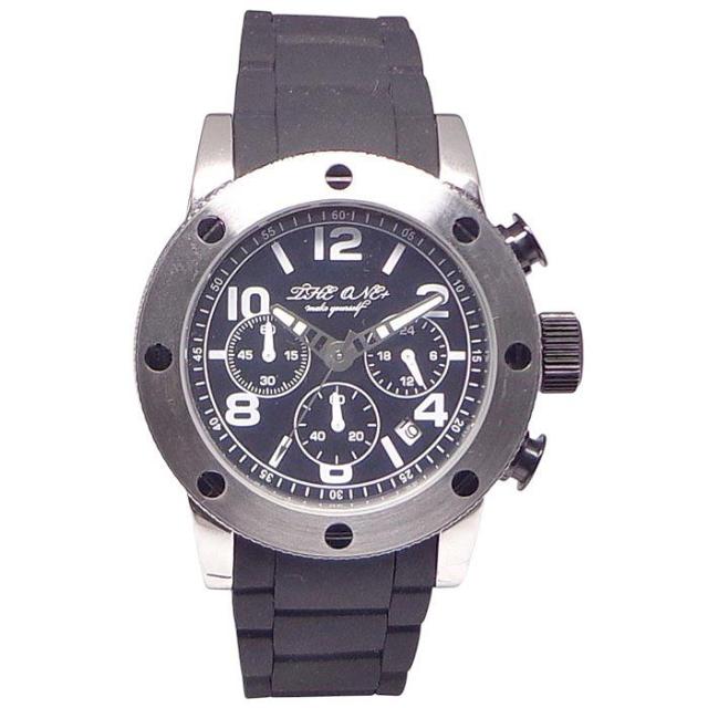 送料無料 腕時計 メンズ ウォッチ クロノグラフ THE ONE 10気圧防水 TO-001-WHSV チェンジベルト 3本付 シリコン ベルト ストップウォッチ カレンダー 日付 24時間計 ステンレスケース