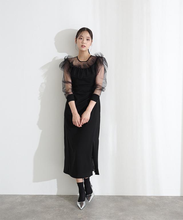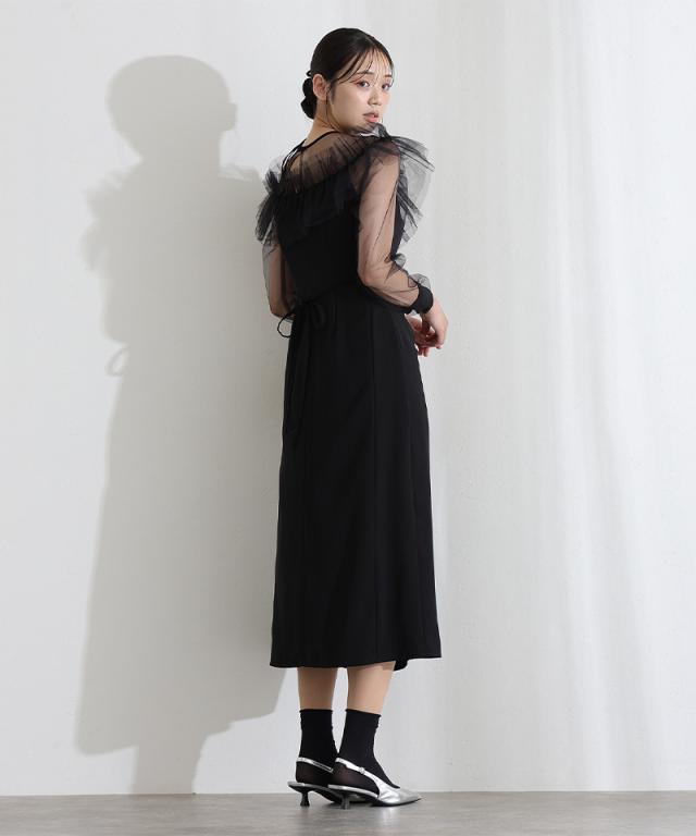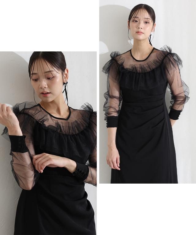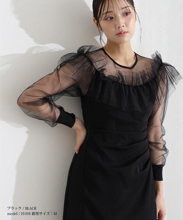 シアーラッフルドレス【514251938】10代・20代・30代・40代・50代・ドレスワンピ・フォーマルワンピ・パンツドレス・服装・ワンピース・ドレスカジュアル・ブランド・七分袖・長袖・ロング・膝丈・薄手・厚手・無地・刺繍・脚長効果・伸縮性・キレイめ・着やせ・体型カバー・スタイルアップ・レース・リボン・ドレープ・小さいサイズ・3Lや4L・かっこいい・かわいい・即日発送・送料無料・結婚式・婚活・披露宴・顔合わせ・発表会・演奏会・二次会・同窓会・お呼ばれ・食事会・謝恩会・親族・七五三・お宮参り・冠婚葬祭・弔事・女子会・韓国・デート・入学式・卒業式・入園式・卒園式・ママ・ピアノ・マタニティー・セレモニー・セレブ・パーティー