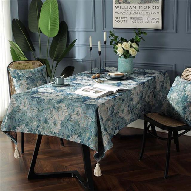 ブルー テーブルクロス テーブル掛け 北欧 おしゃれ 家庭用 業務用 テーブルカバー 汚れ防止 サイズ別 長方形 正方形 キッチン用品 リビング ダイニング キッチン 来客 デスクマット テーブルカバー テーブルクロース 花柄 140*220cm 140*240cm 140*260cm