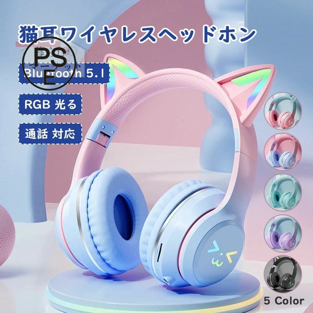 猫耳 ヘッドホン ネコ耳 光る マイク付き ワイヤレス bluetooth5.3 switch対応 有線 無線 子供 大人 水色 ピンク 黒 緑 紫 ネコミミ hz-bt612