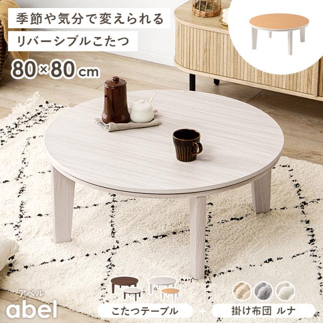 こたつ テーブル こたつセット こたつ布団 一人用 丸形 こたつテーブル 1人用 円形 かわいい 木目 ホワイト ブラウン 幅80 アベル ルナ 丸テーブル 木目柄 北欧 丸 円 こたつ台 白 一人暮らし