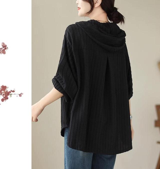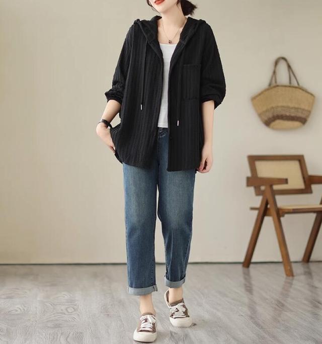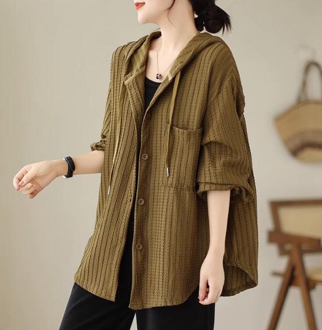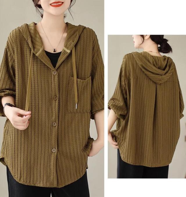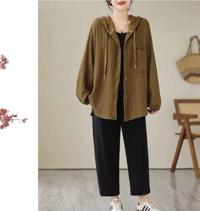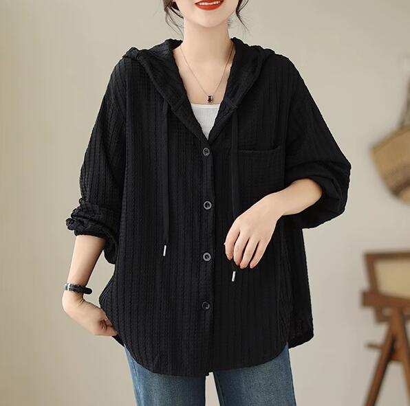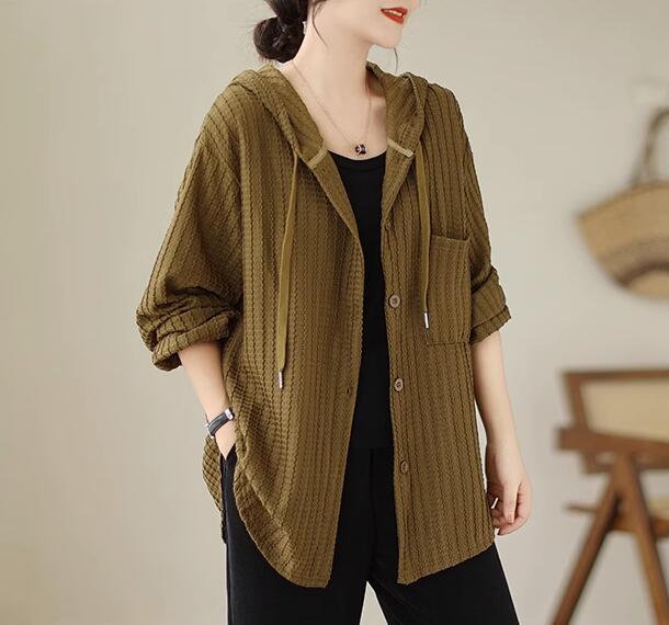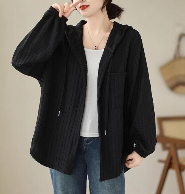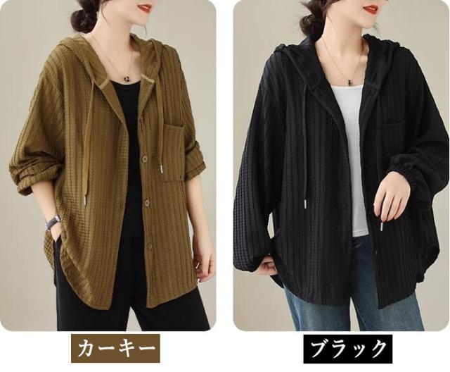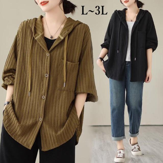 ライトアウター レディース アウター シャツ風 フード ボリューム袖 春 秋 ゆったり 大きいサイズ 長袖 羽織もの 前開き 冷房対策 20代 30代 40代 50代 L 2L 3L