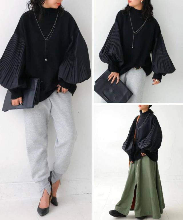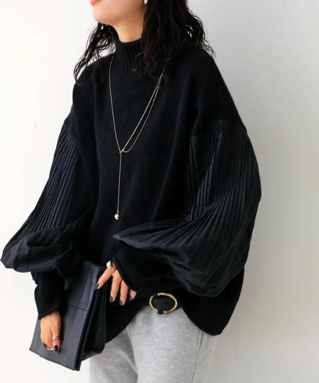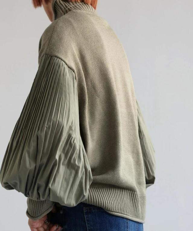 袖はバルーンがかったぽわんとしたシルエットとプリーツでどこから見ても抜かりないニット。