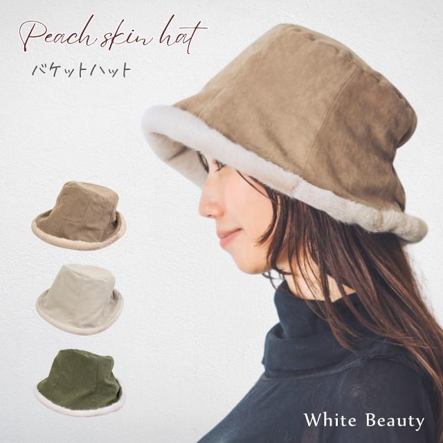 バケットハット レディース 冬 ピーチスキン スウェード風 帽子 軽い ファー 上品 おしゃれ 大人かわいい ふわもこ 軽量 無地 暖かい 防寒 アイボリー ブラウン カーキ クリスマス ギフト プレゼント ホワイトビューティー