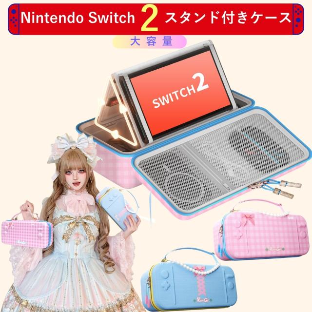 Switch2収納バッグ【Switch2専用ケース】スタンド機能 12枚収納が可能 Switch2ケース ドック収納 保護カバー 可愛い 防塵&防水 持ち運び便利 ジョイスティックカバーも付属