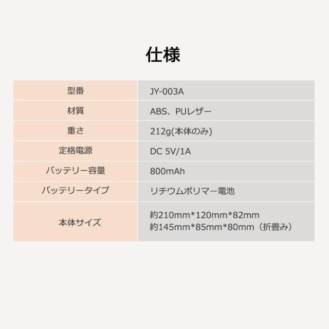 ●【タイマー機能】 15分間連続使用すれば、自動的に電源を切ります。800mAh大容量バッテリー搭載され、フル充電後、約2時間稼働できます。