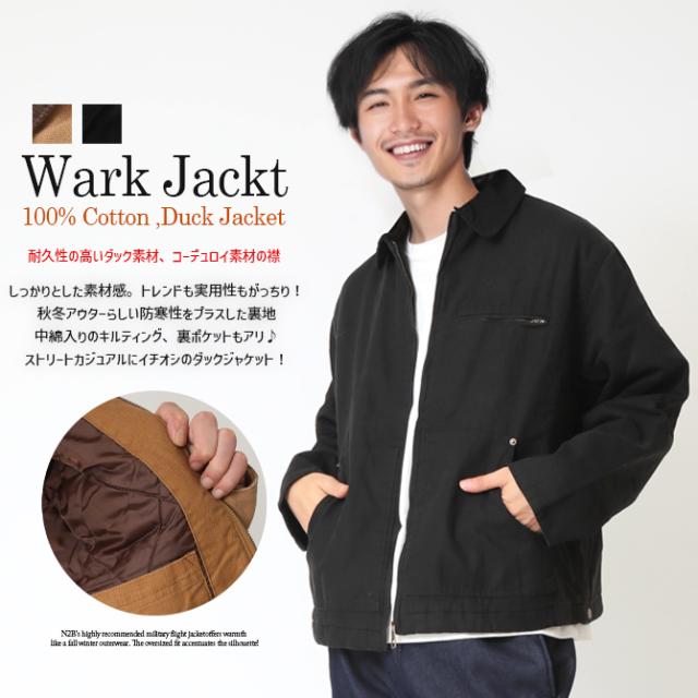 ダックジャケット メンズ ワークジャケット ショート丈 ブルゾン ジャンパー デッキジャケット 耐久性 綿 コットン キルティング 秋 新作 メンズアウター