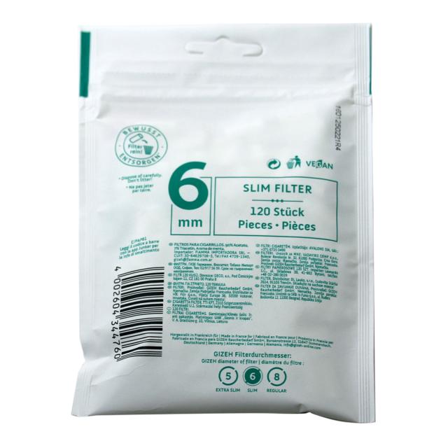 GIZEH ギゼ フィルター 6mm スリム・メンソール 120個 7-21012-50 メール便専用