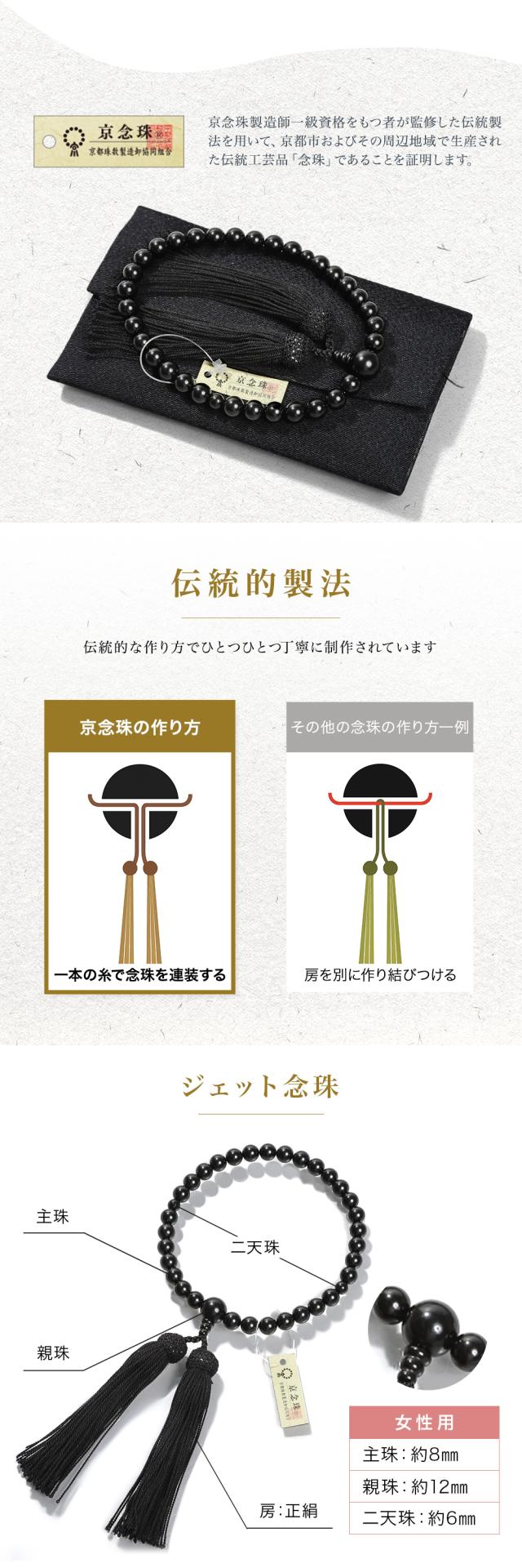 数珠 女性用 ブレスレット 念珠 ジェット 天然石 お数珠 8mm 京念珠 数珠袋 数珠入れ おしゃれ 桐箱 ふさ 正絹 宗派共通 冠婚葬祭 葬式 葬儀 法事 葬式 お墓参り お通夜 告別式 フォーマル ジュエリー アクセサリー レディース 誕生日 プレゼント ギフト 母の日