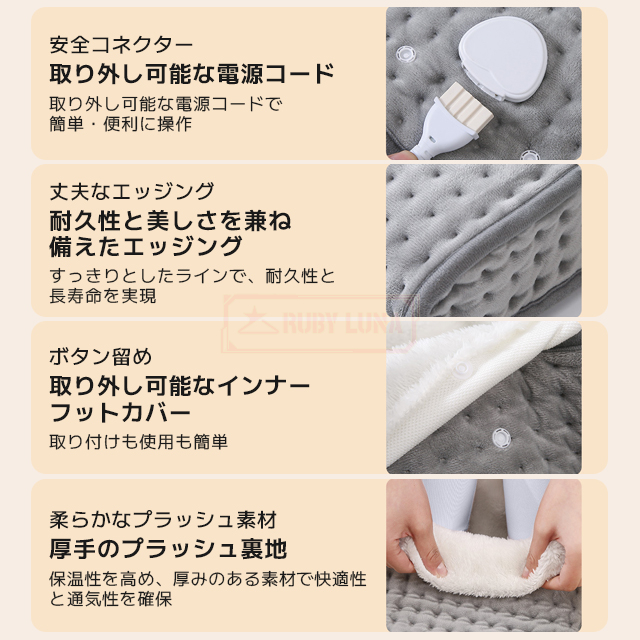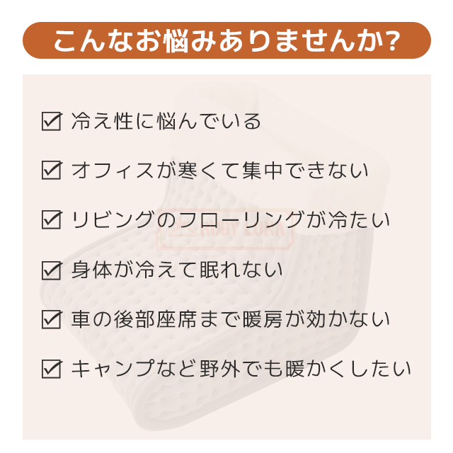 | 【使用場所&持ち運び便利】 | ◆コンパクトで軽量なデザインで持ち運びが可能です。ソファでテレビ、本を見たいときにリラックスでき、机で勉強したり、パソコンの前で仕事をしたりするときに、足を冷やさず欠かせないものです。大人、子供それとも高齢者でも楽しめます。寒い冬でも暖かく快適過ごせます。ご両親や子供や恋人へプレゼントとしても最適です。 |