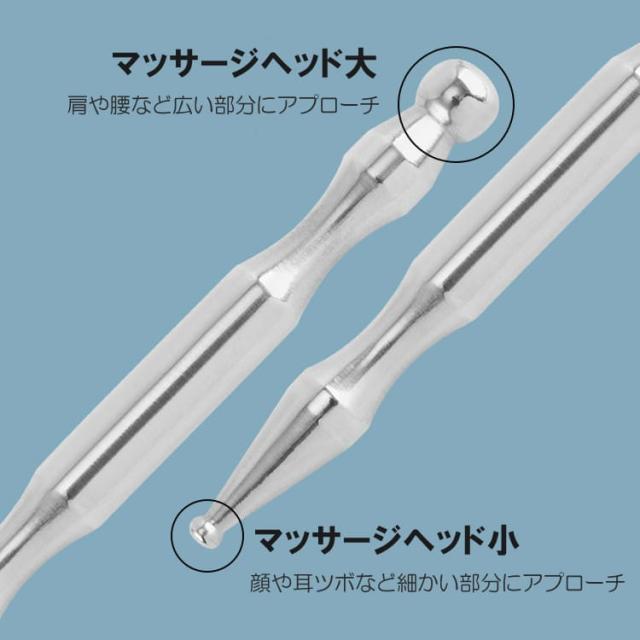 両端には大小2種類のマッサージヘッドが付いており、