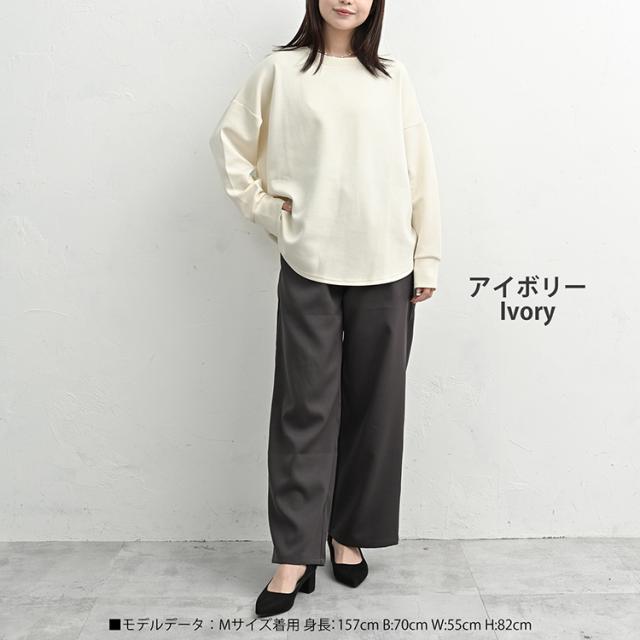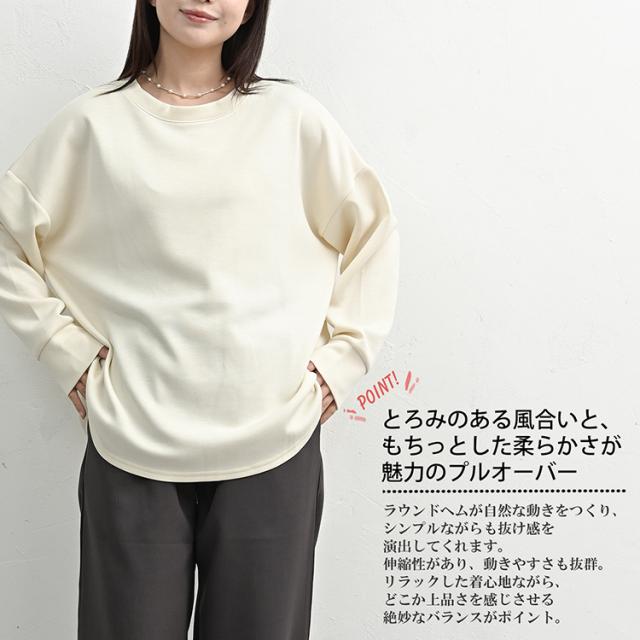 ラウンドヘムで抜け感をプラスする 長袖プルオーバー。 しなやかに伸びて動きやすい ストレスフリーな着心地が魅力。 とろみのある風合いと もちっとした柔らかさが 上品なトップスです。 |
