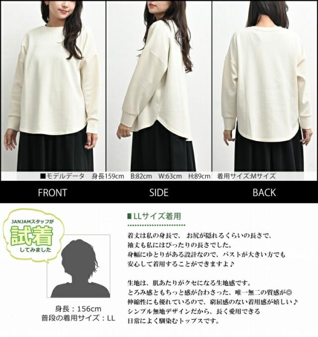 大きいサイズ レディース ラウンドヘムプルオーバー 長袖 ゆるシルエット Uネック カットソー トップス M/LL/3L/4L ゆったりサイズ ぽっちゃり女子 プラスサイズ