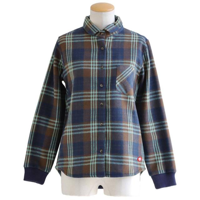 ネルシャツ 暖かい 裏フリース レディース 長袖 袖リブ 折り返すだけで バンドカラー ショールカラー 2WAY チェック シャツ しっかり 丈夫 お尻 隠れ カバー 起毛 ポケット カジュアル 総裏地 紺 秋 冬 洗濯可 4サイズ パティ