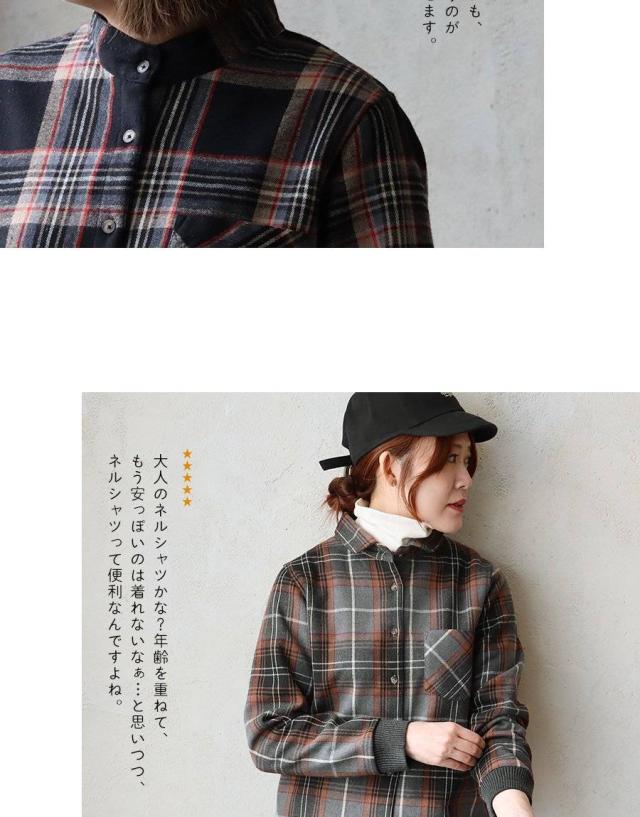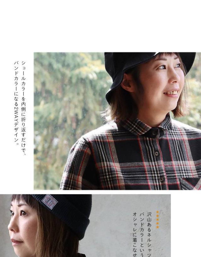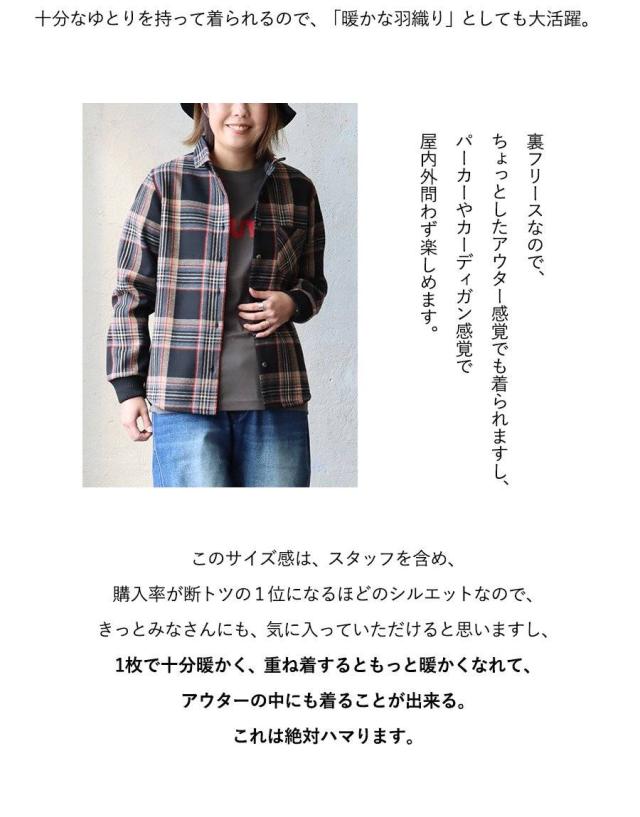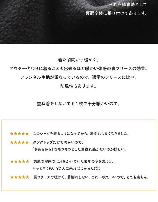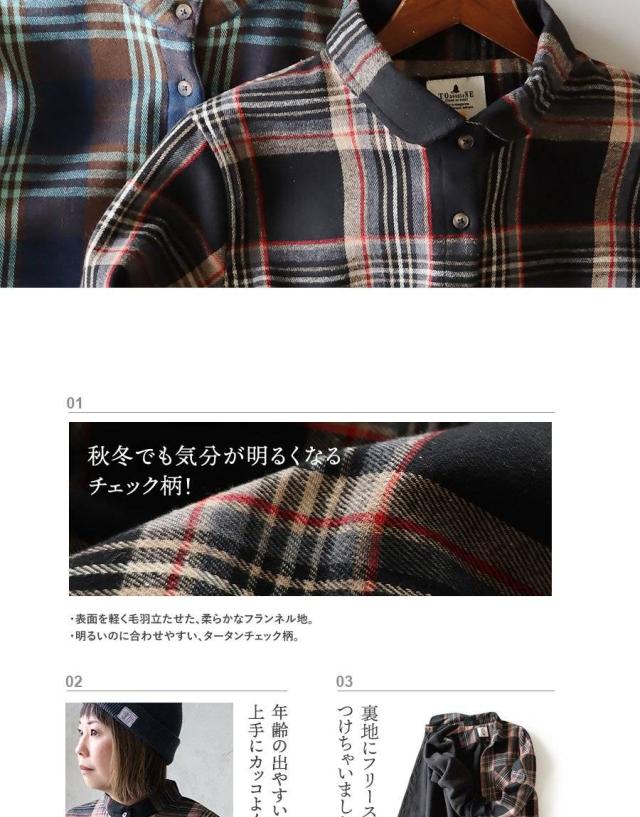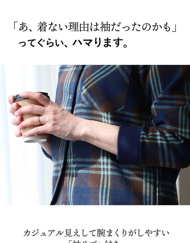 ネルシャツ 暖かい 裏フリース レディース 長袖 袖リブ 折り返すだけで バンドカラー ショールカラー 2WAY チェック シャツ しっかり 丈夫 お尻 隠れ カバー 起毛 ポケット カジュアル 総裏地 紺 秋 冬 洗濯可 4サイズ パティ TOneontoNE トーン