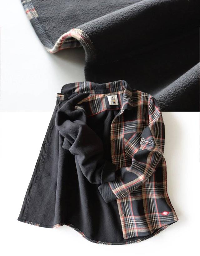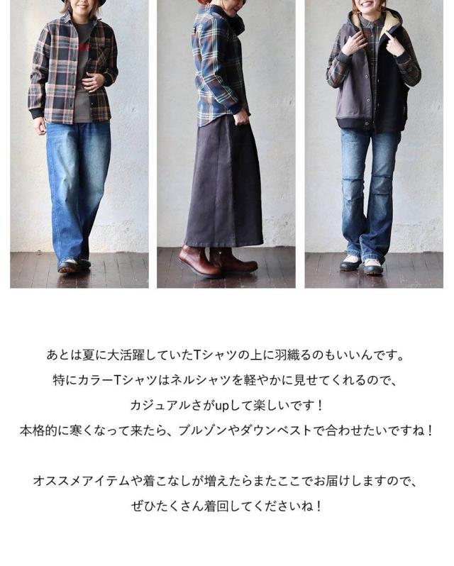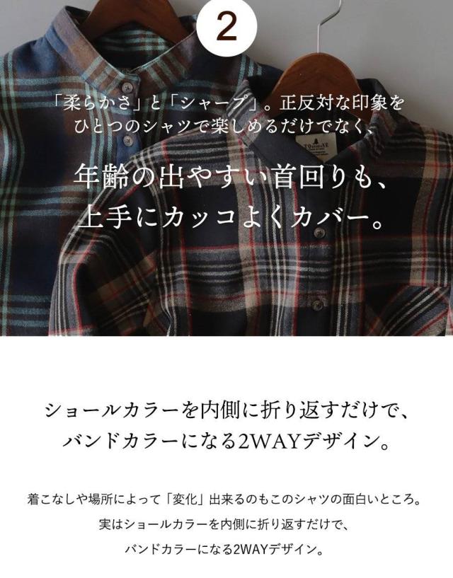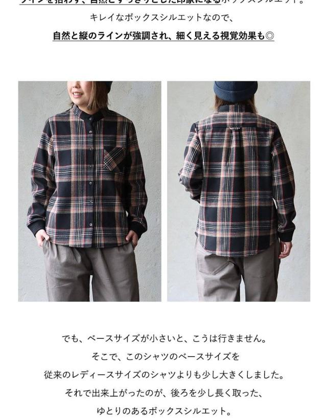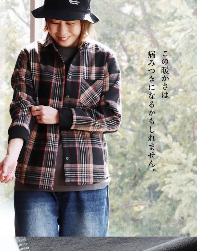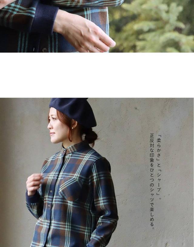 ネルシャツ 暖かい 裏フリース レディース 長袖 袖リブ 折り返すだけで バンドカラー ショールカラー 2WAY チェック シャツ しっかり 丈夫 お尻 隠れ カバー 起毛 ポケット カジュアル 総裏地 紺 秋 冬 洗濯可 4サイズ パティ TOneontoNE トーン