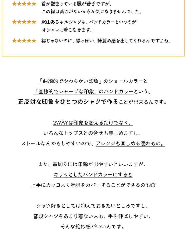 ・ショールカラーを内側に折り返すだけで、バンドカラーになる2WAYデザイン。