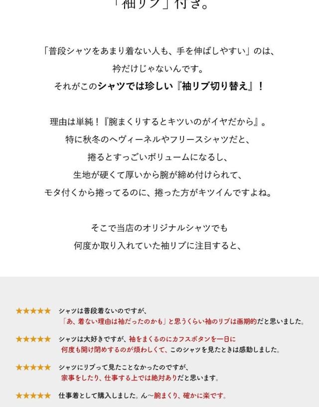 ・カジュアル見えして腕まくりがしやすい「袖リブ」付き。