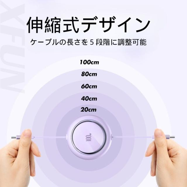 伸縮式のデザインで、ケーブルの長さを 5 段階(20cm、40cm、60cm、80cm、100cm)に調整でき、使用シーンに合わせて長さを自由に設定できます。