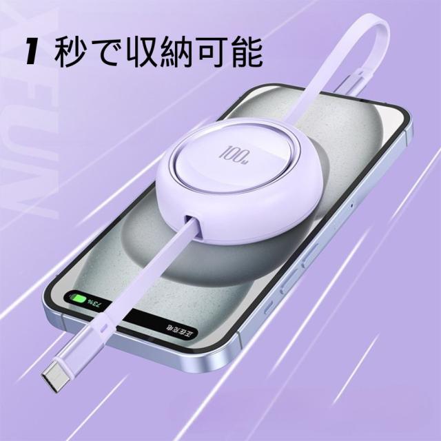 巻き取り機能があり、ケーブルが絡まず、収納が簡単です。1 秒で収納でき、持ち運びに便利です。
