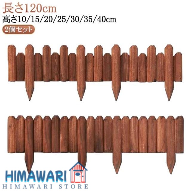 フラワーフェンス 高さ10/15/20/25/30/35/40cm 木製 2個セット 鉢カバー ウッドフェンス 柵 防腐 花壇 仕切り ウッドフェンス 長さ120cm 屋外 ミニフェンス 囲い 植え込み 園芸 庭づくり ガーデニング 挿すだけ