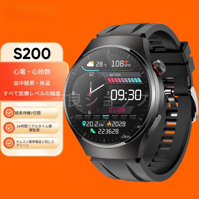 対応機能: ECG(心電図)、心拍数、血中酸素、体温、血圧、睡眠、ストレス、運動記録、Bluetooth通話、通知