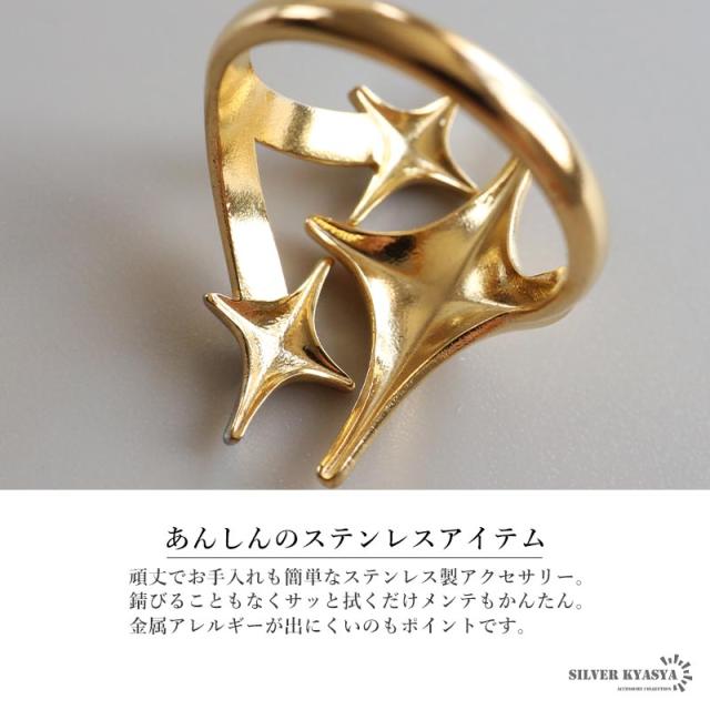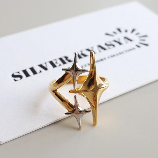 ステンレス スターリング 星 ごつめ コンビカラー メタルリング ワイドリング ゴールド シルバー 指輪 太め 大きめ 存在感 お洒落 幾何学 個性的 プチプラ マルチ ミックス レディース 女性 金アレ対応