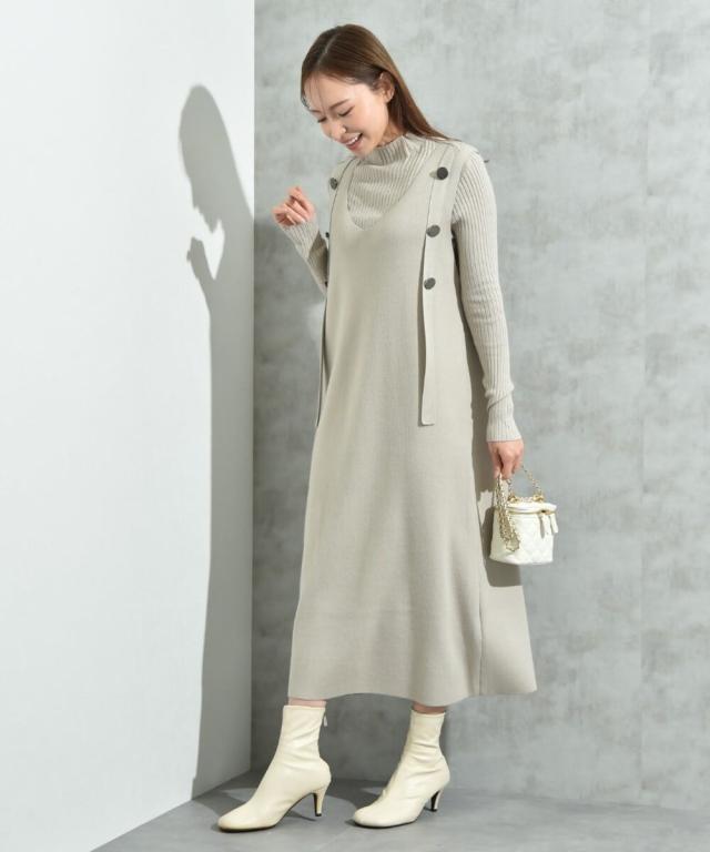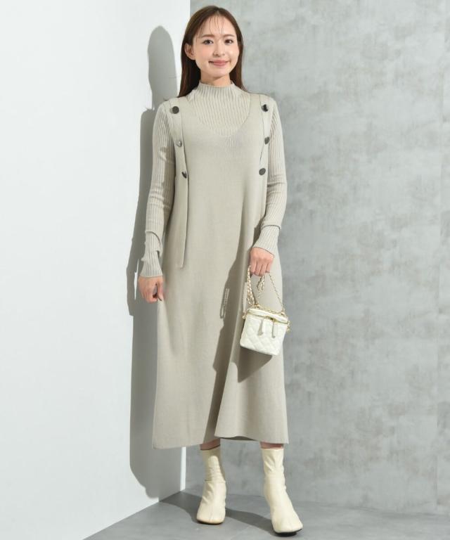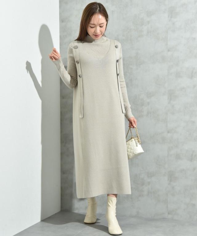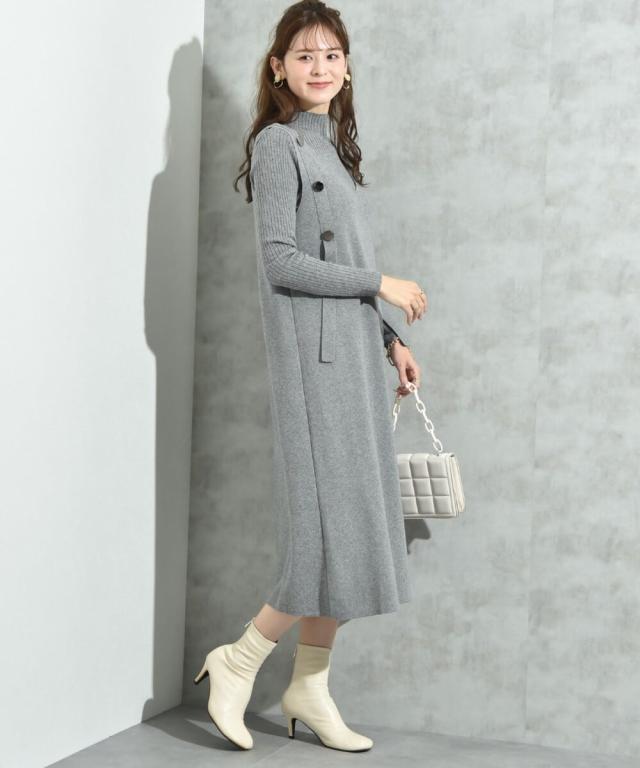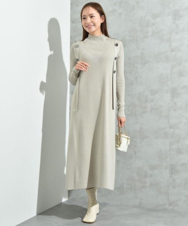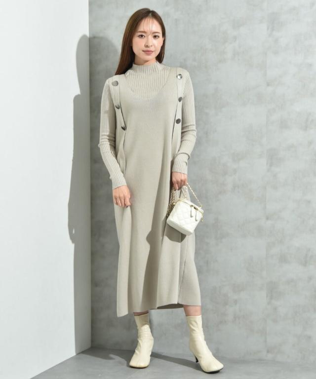 本体のワンピースは肌触りの良いニット素材を使用。何と言ってもコーディネートに悩まないのが嬉しいポイント◎